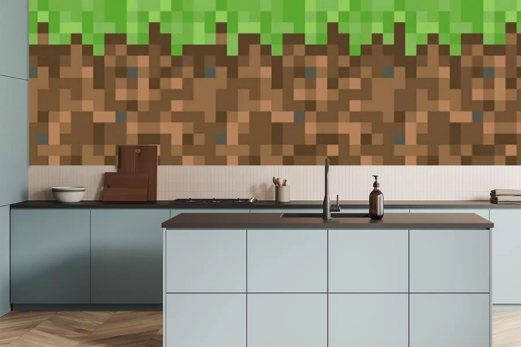 Papier peint  Fond géométrique style jeu vidéo en couleurs vertes et brunes