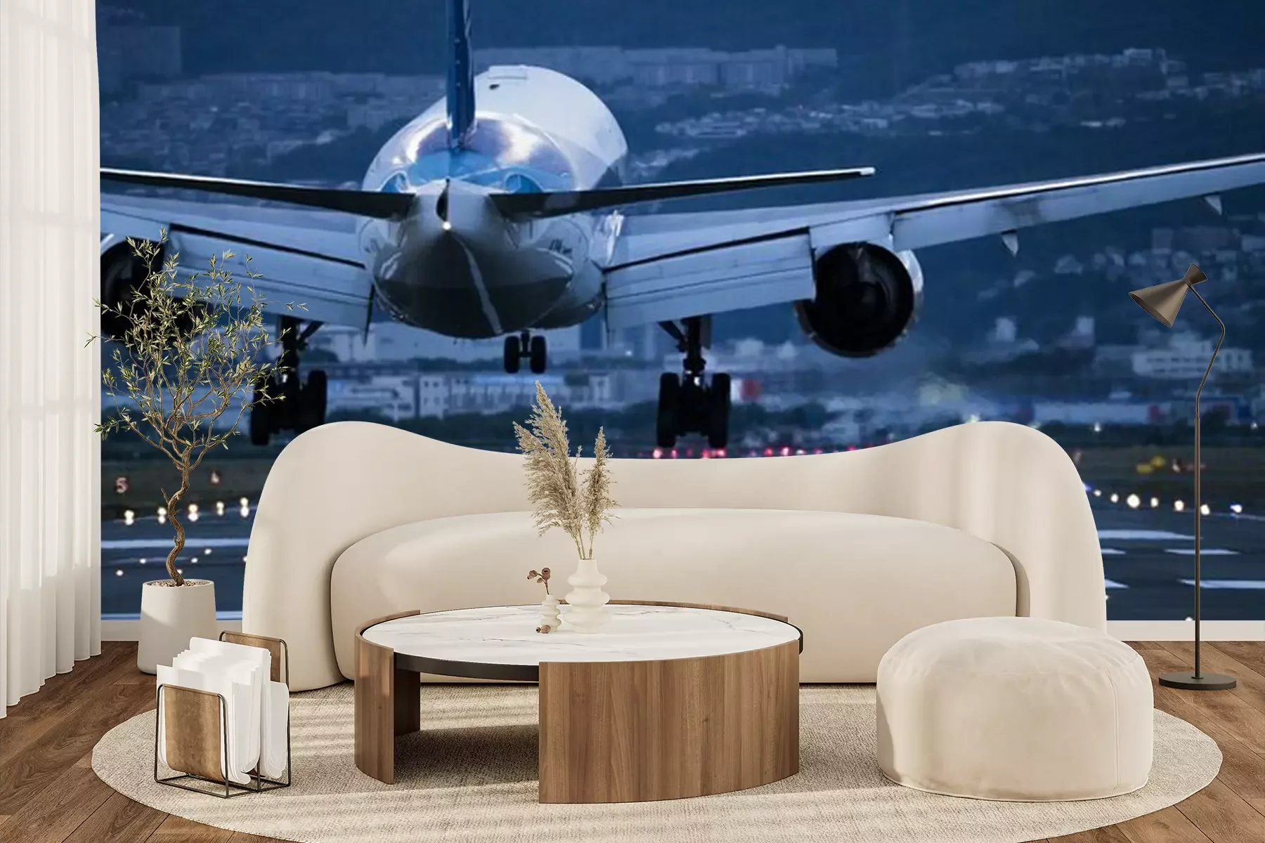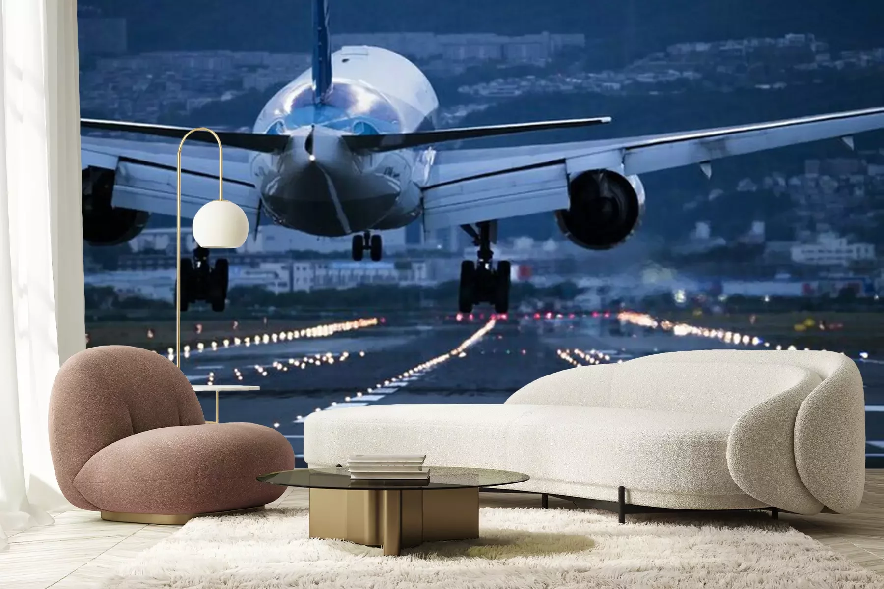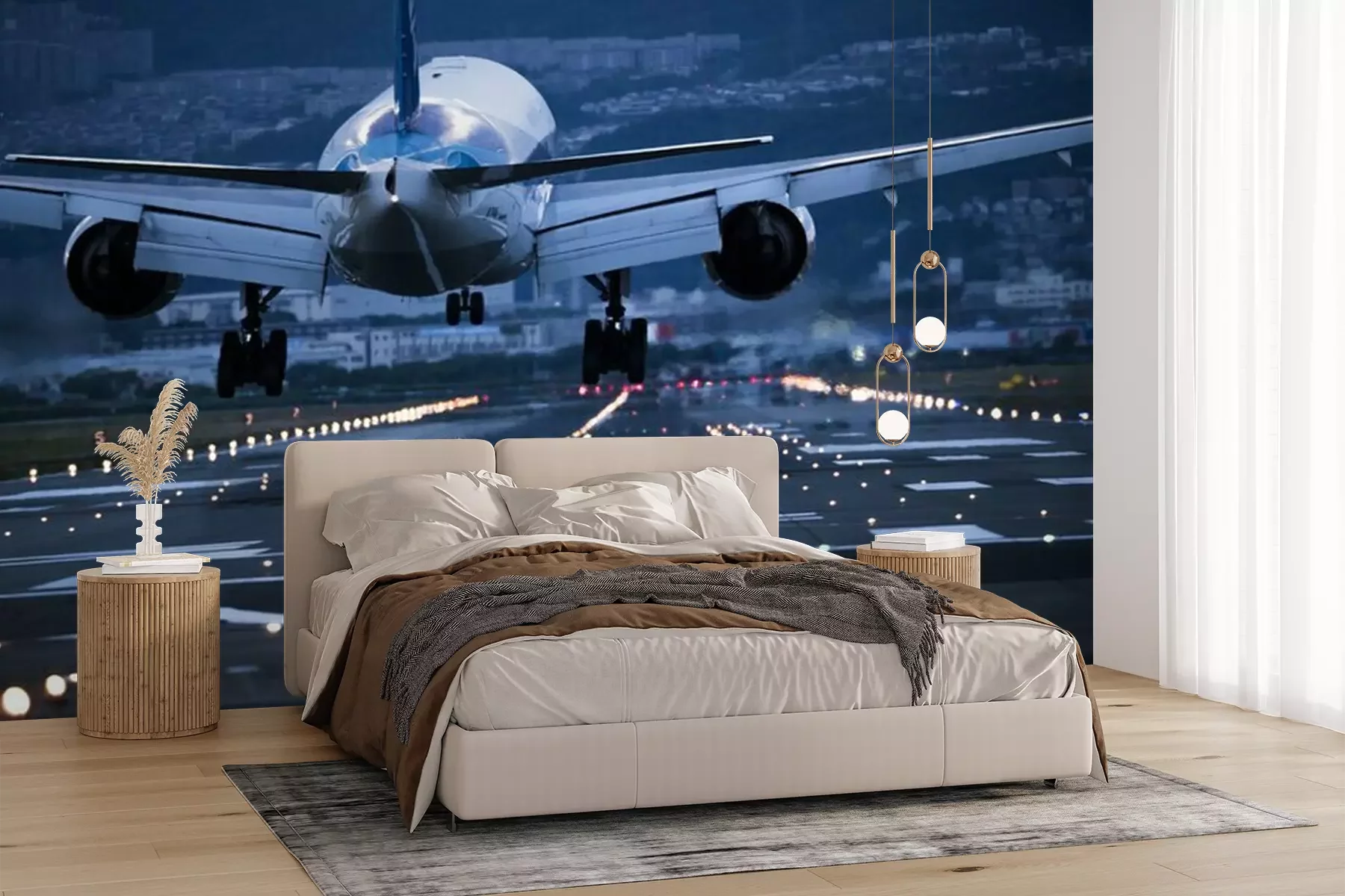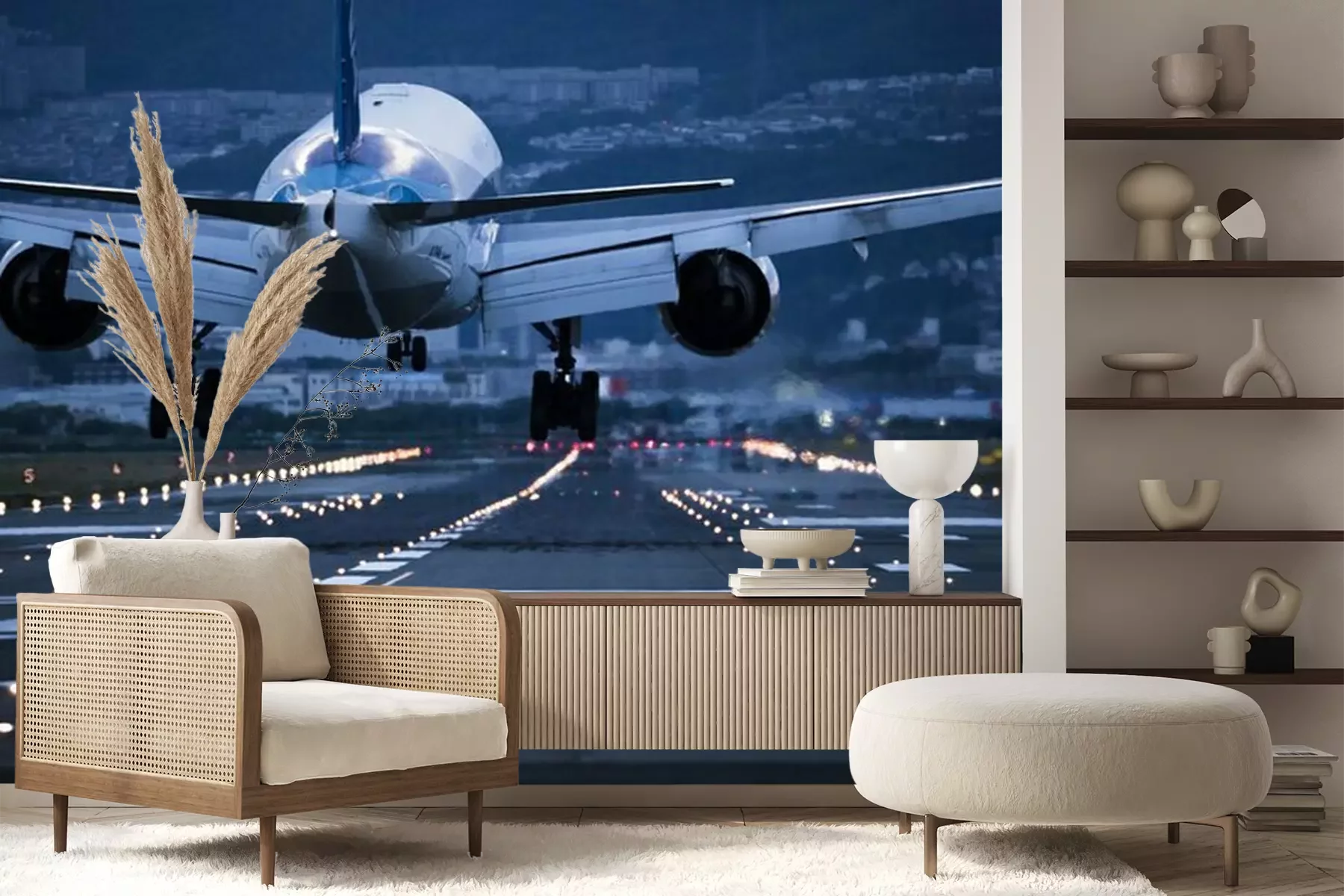 Papier peint  Le soir, l'avion est sur le point d'atterrir sur la piste