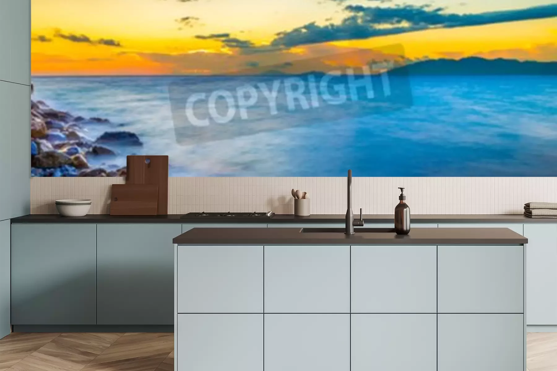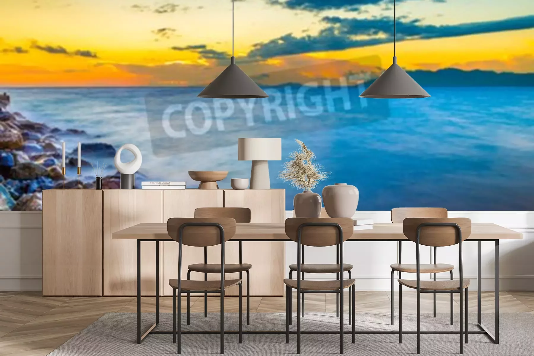 Papier peint  Lever de soleil sur la mer en Grèce
