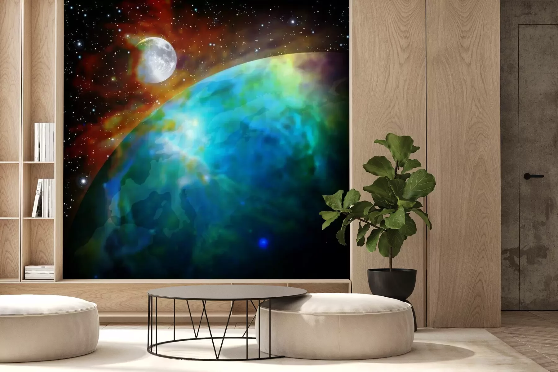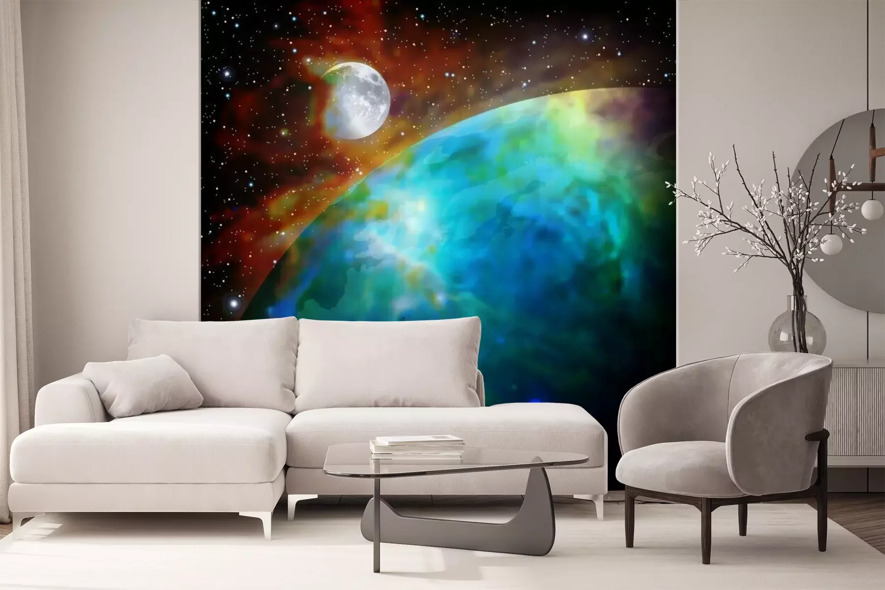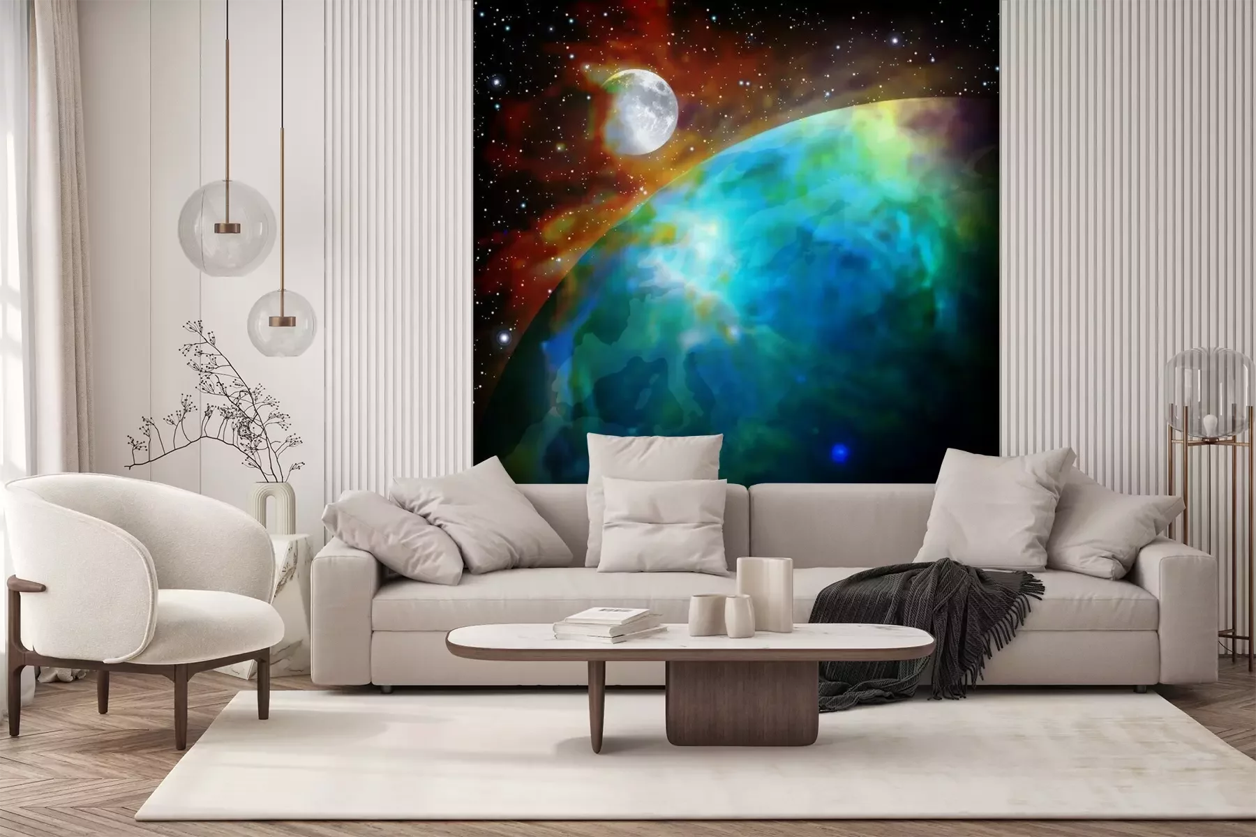 Papier peint  Lune et Terre dans une galaxie
