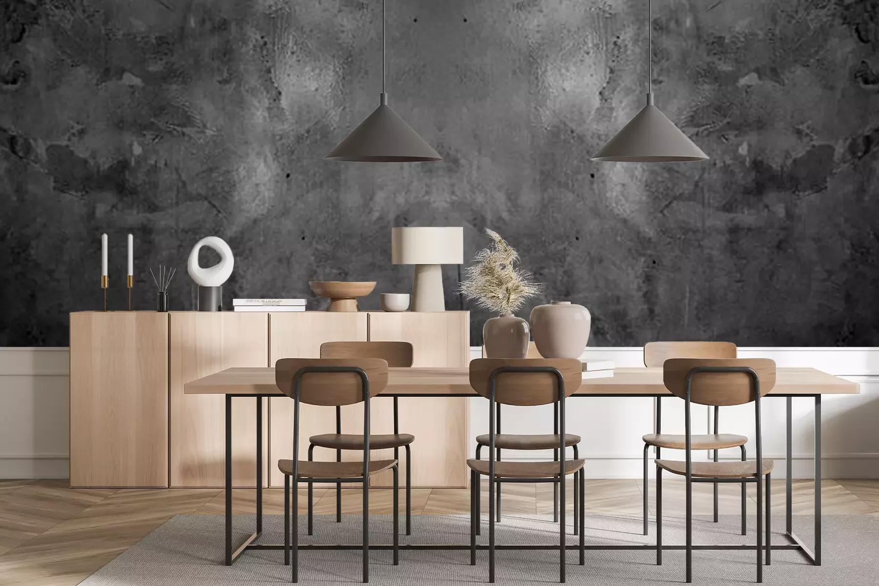 Papier peint  Old wall texture cement dark black gray panorama background abstract grey color design are light with white gradient background.