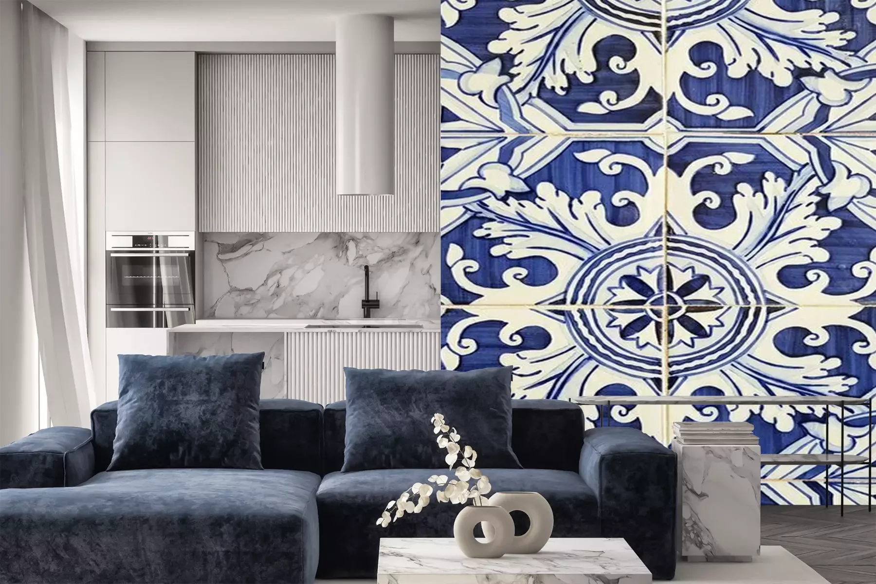 Papier peint  Portuguese azulejo style decorated ceramic tiles background