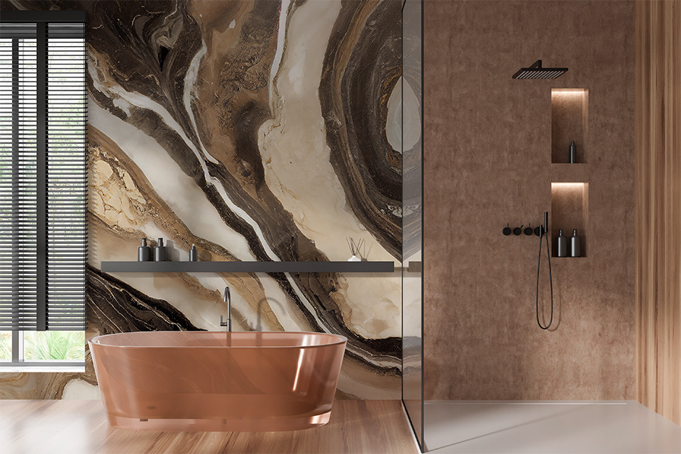 Mocha Mousse vise à nous rapprocher de la nature, c'est pourquoi les designs inspirés par ses trésors sont parfaits pour les espaces conçus pour la relaxation, tels que la salle de bain ou la chambre à coucher - redro.fr
