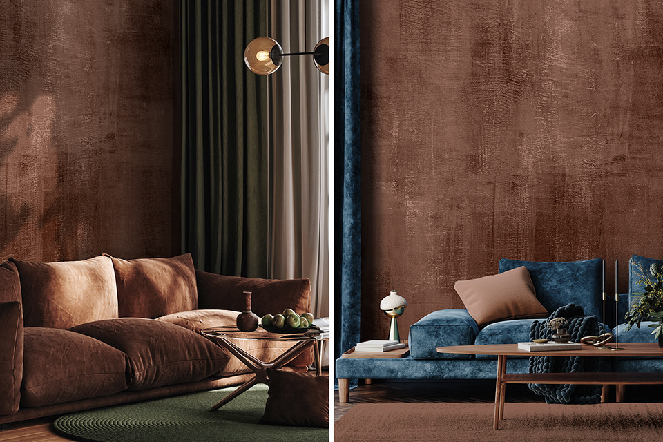 Vous pouvez repeindre les murs et remplacer les meubles si vous envisagez de rénover votre intérieur depuis longtemps, mais vous pouvez aussi introduire la couleur tendance de l'année 2025 en vous appuyant sur votre décor existant. De nouveaux accessoires, textiles ou décorations murales suffisent. Si vous cherchez une solution qui fera vraiment la différence, optez pour un papier peint. Une bonne idée consiste à utiliser des motifs imitant différents matériaux et textures - un mur enduit, du métal brut ou l'écorce d'un arbre exotique. Dans une salle de bains élégante, un motif en marbre précieux dans une teinte chocolat sera du plus bel effet.