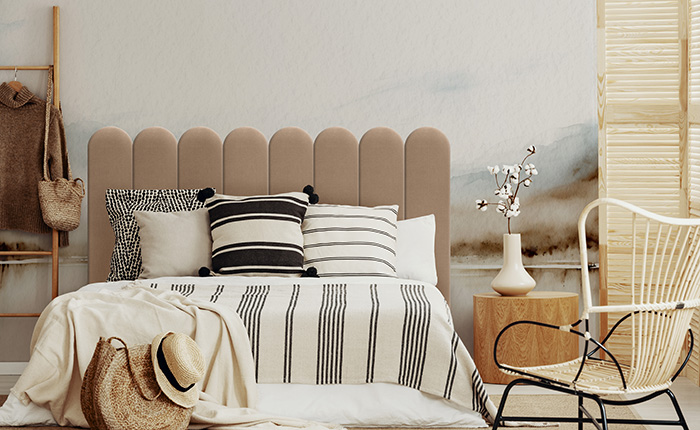 Panneau mural capitonné 20x100 beige rectangle arrondi