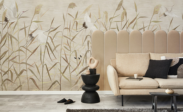 Panneau mural capitonné 30x100 beige rectangle arrondi