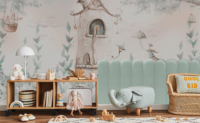 Panneau mural capitonné 30x60 vert menthe rectangle arrondi