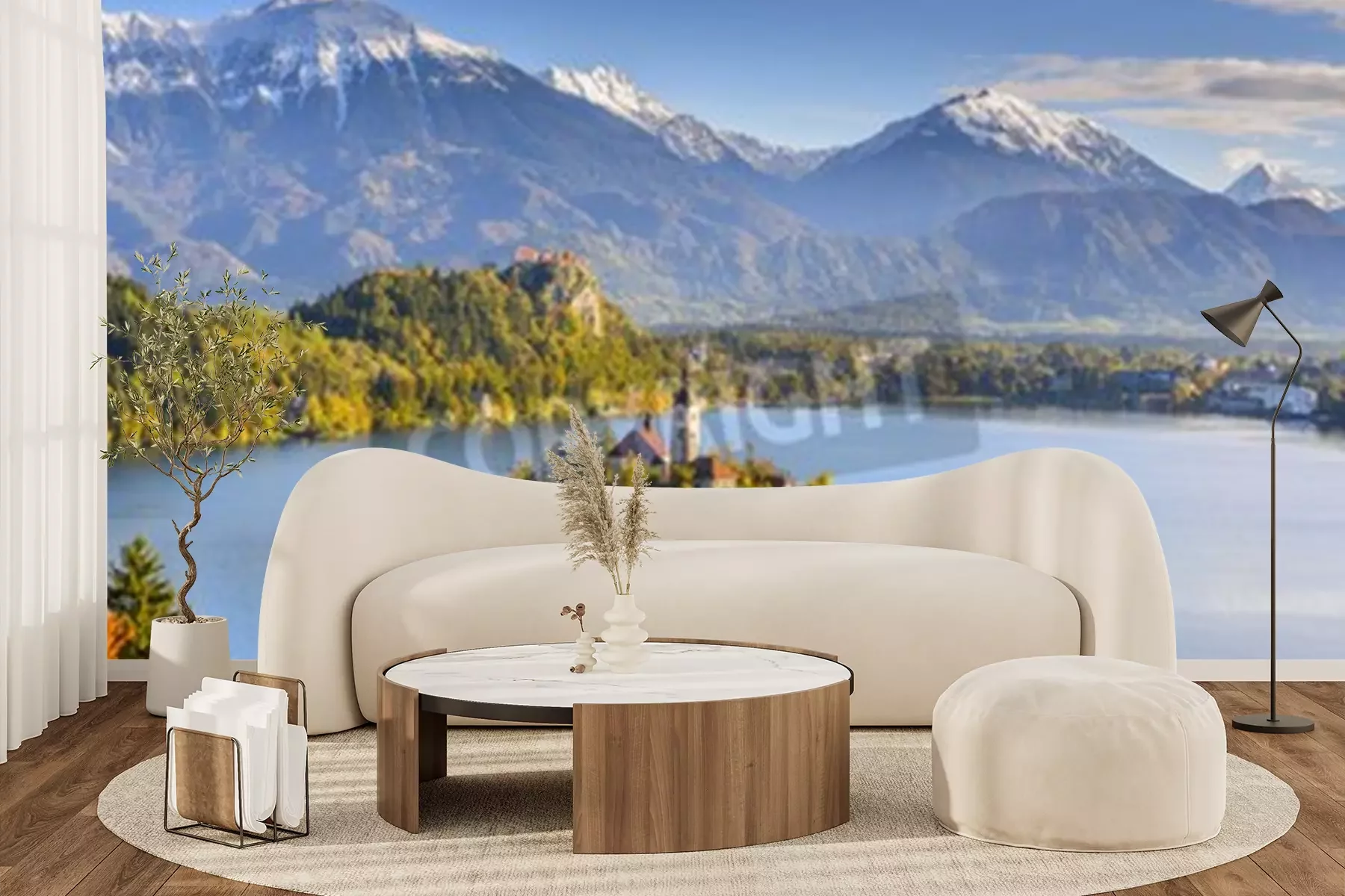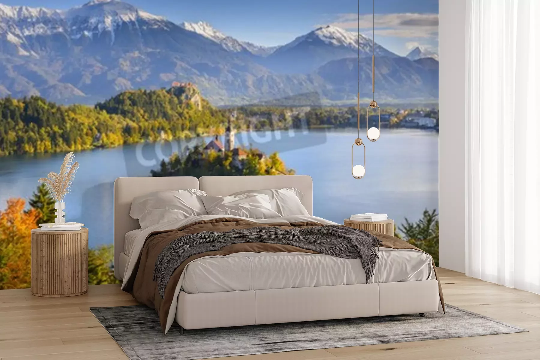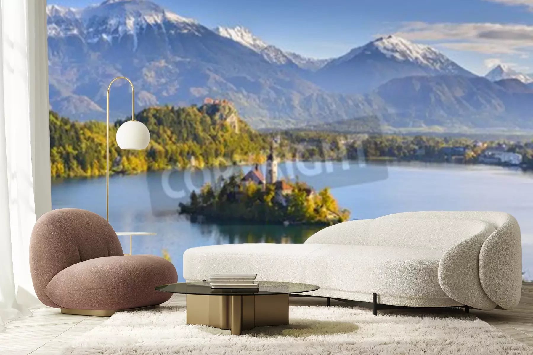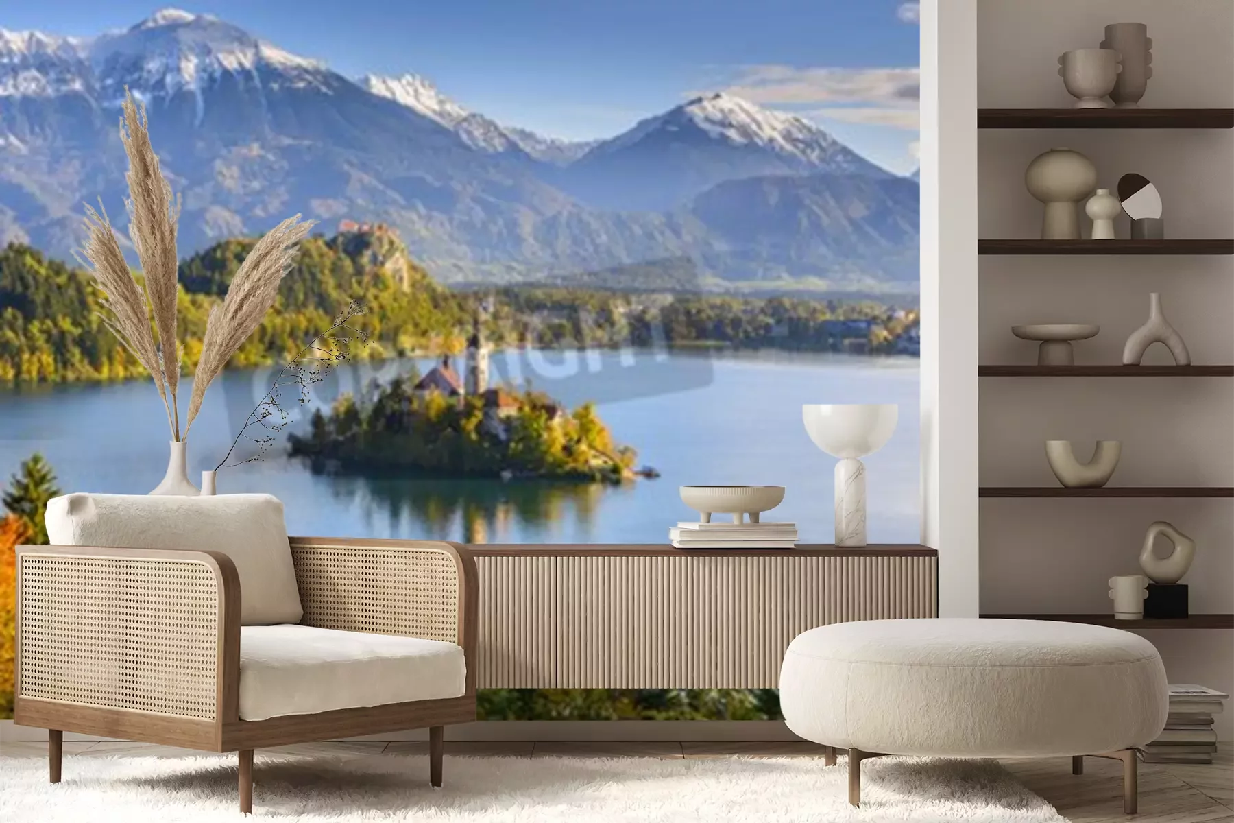 Papier peint  3D château bord de lac en montagne