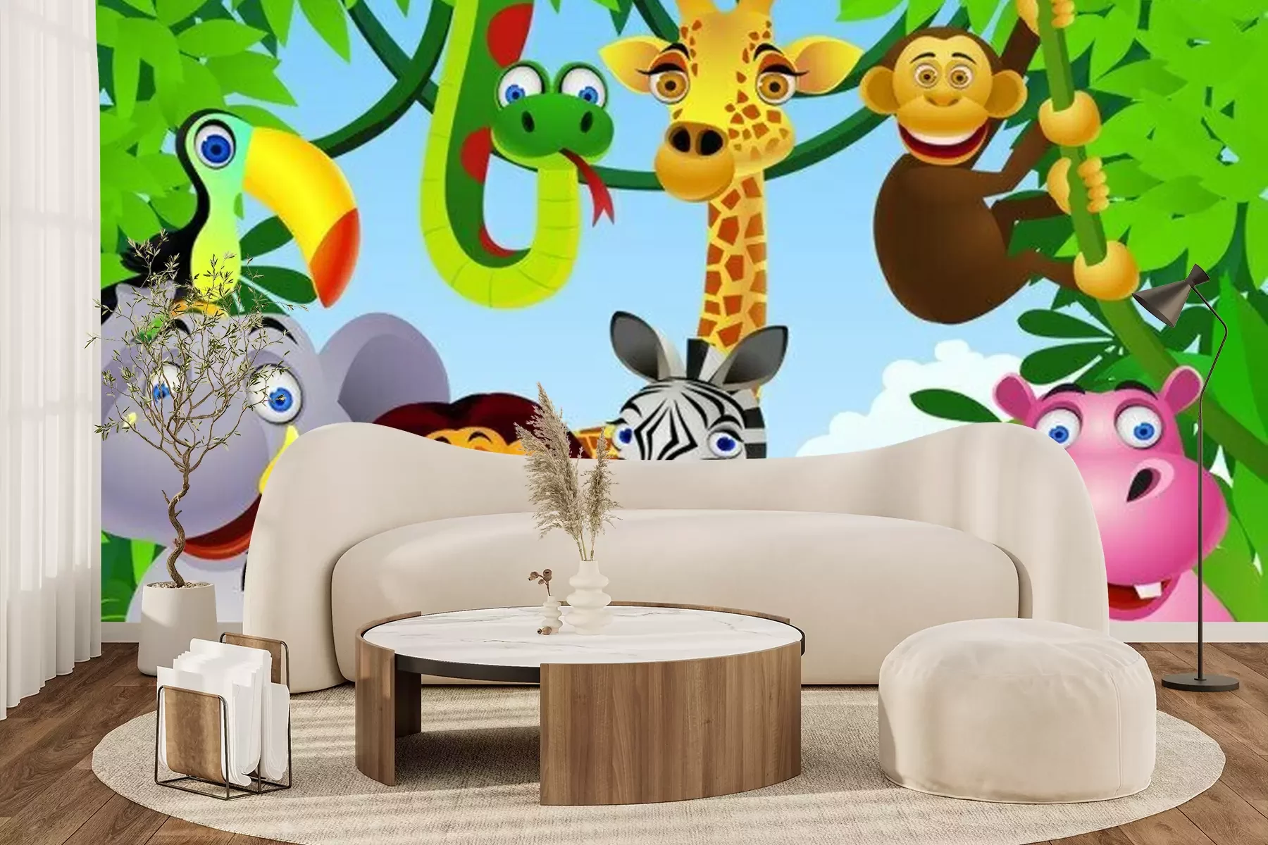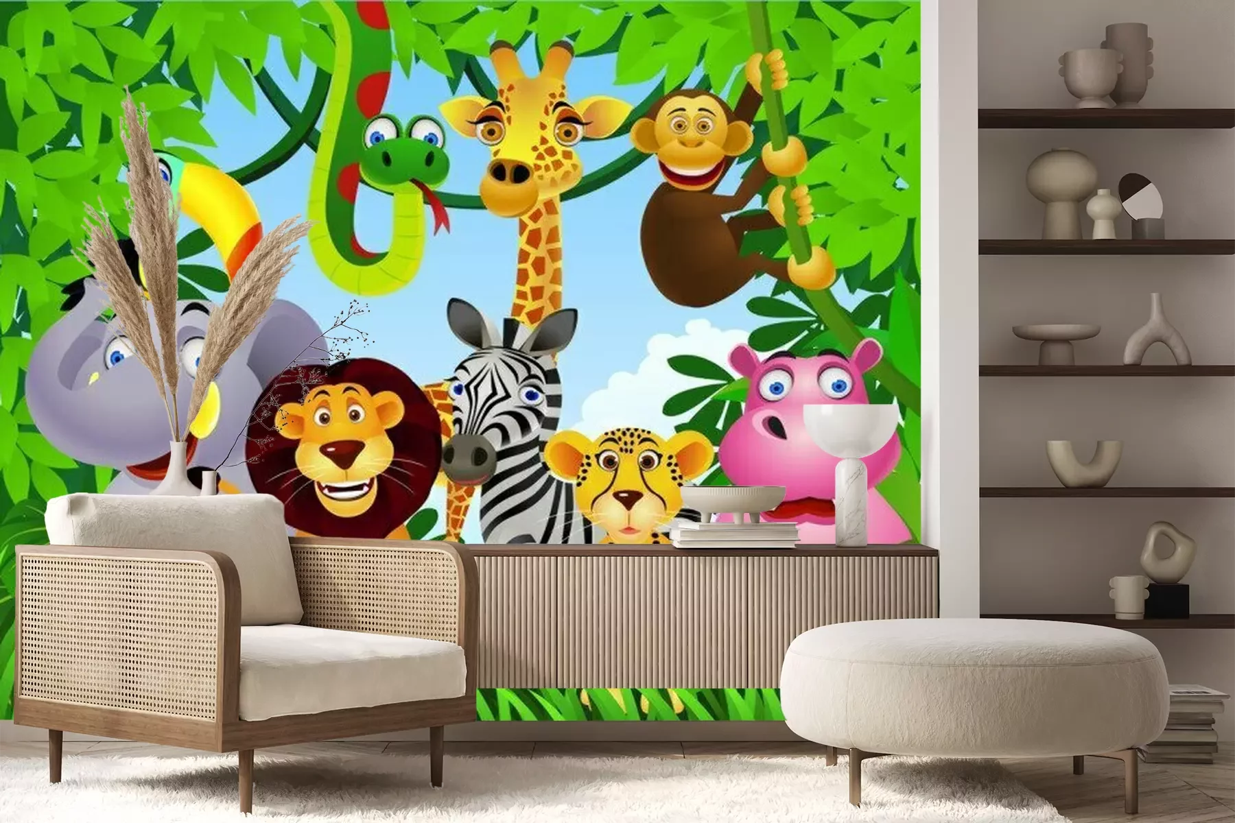 Les animaux du zoo et végétation verteSticker