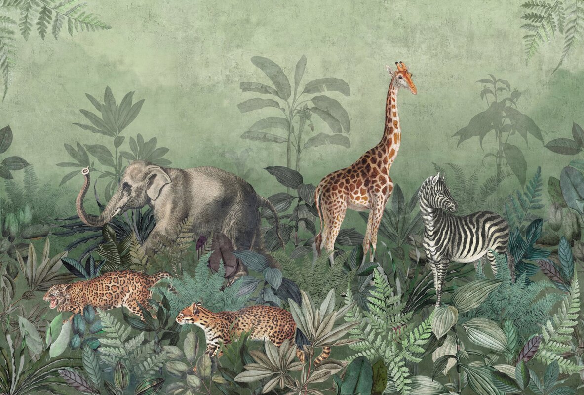 Papier peint : Animaux de safari dans la jungle tropicale