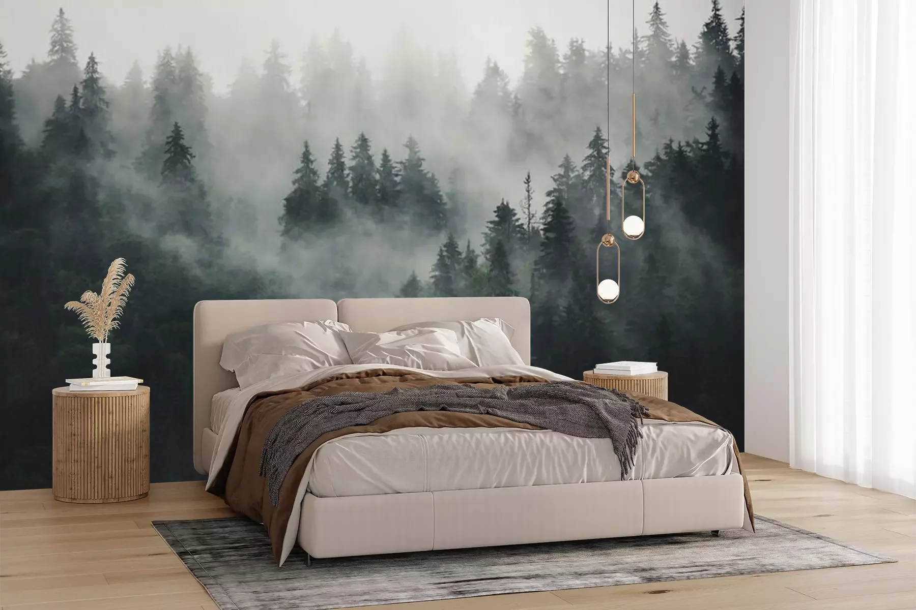 Brume rosée sur la forêtPapier peint