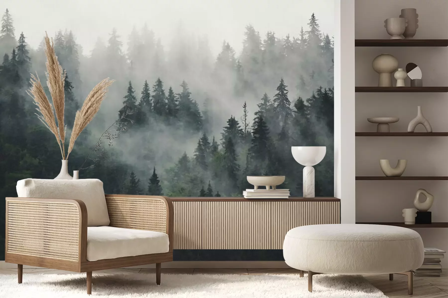Forêt sombre enveloppée de brumePapier peint