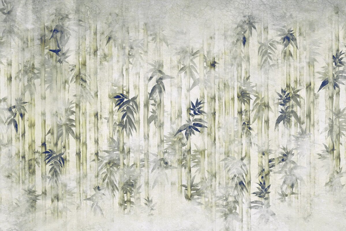 Papier peint : Arbres de bambou avec des feuilles dans la brume