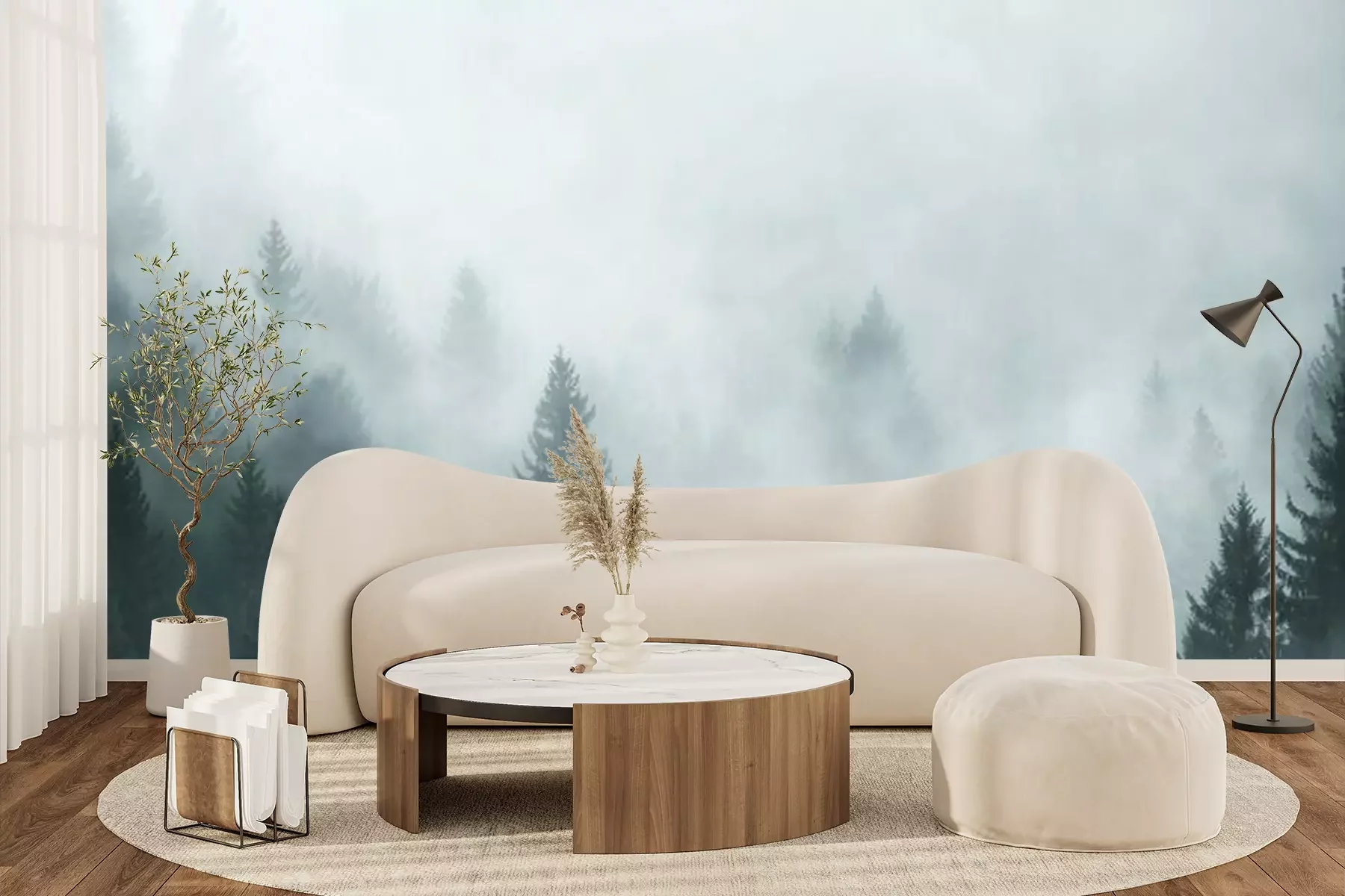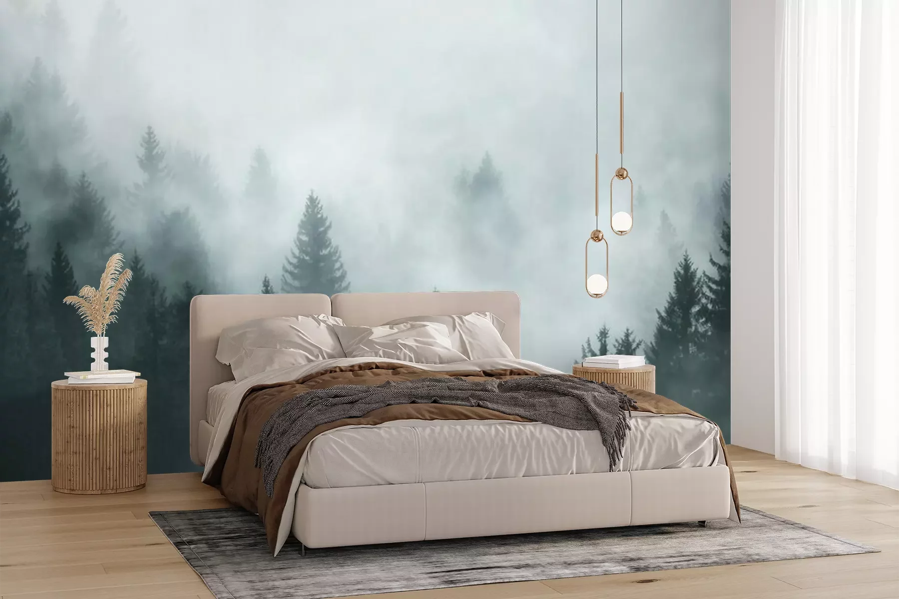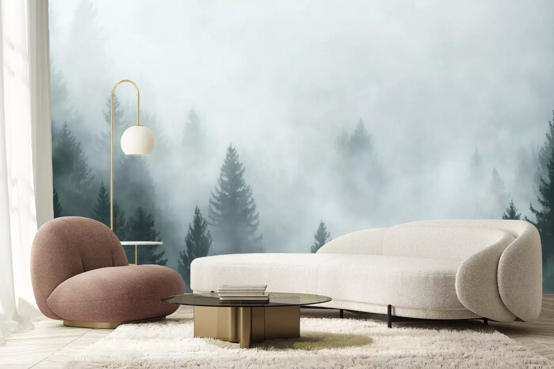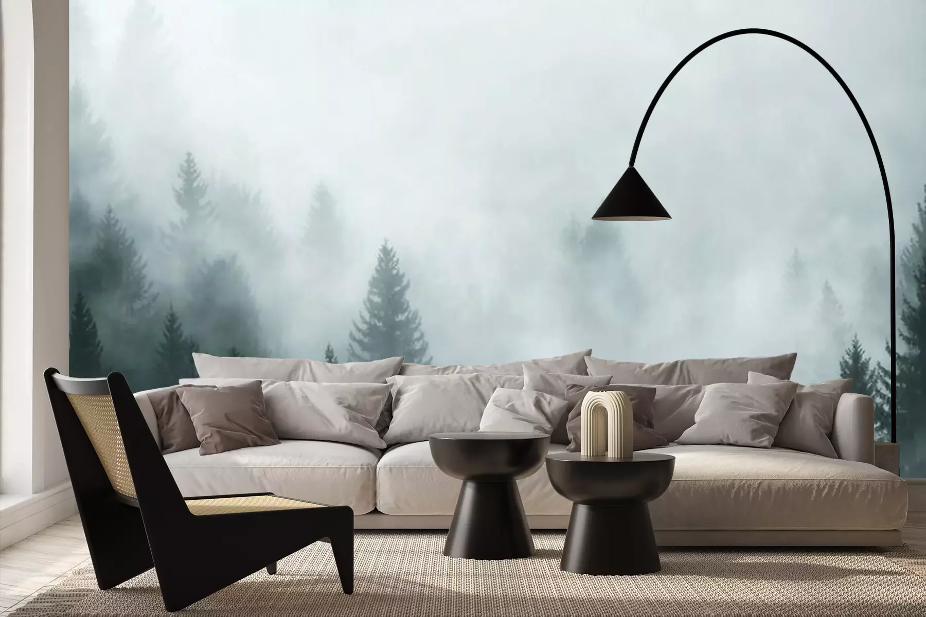 Paysage forestier brumeux le matinLivraison sans problème assurée par des transporteurs de confiance
