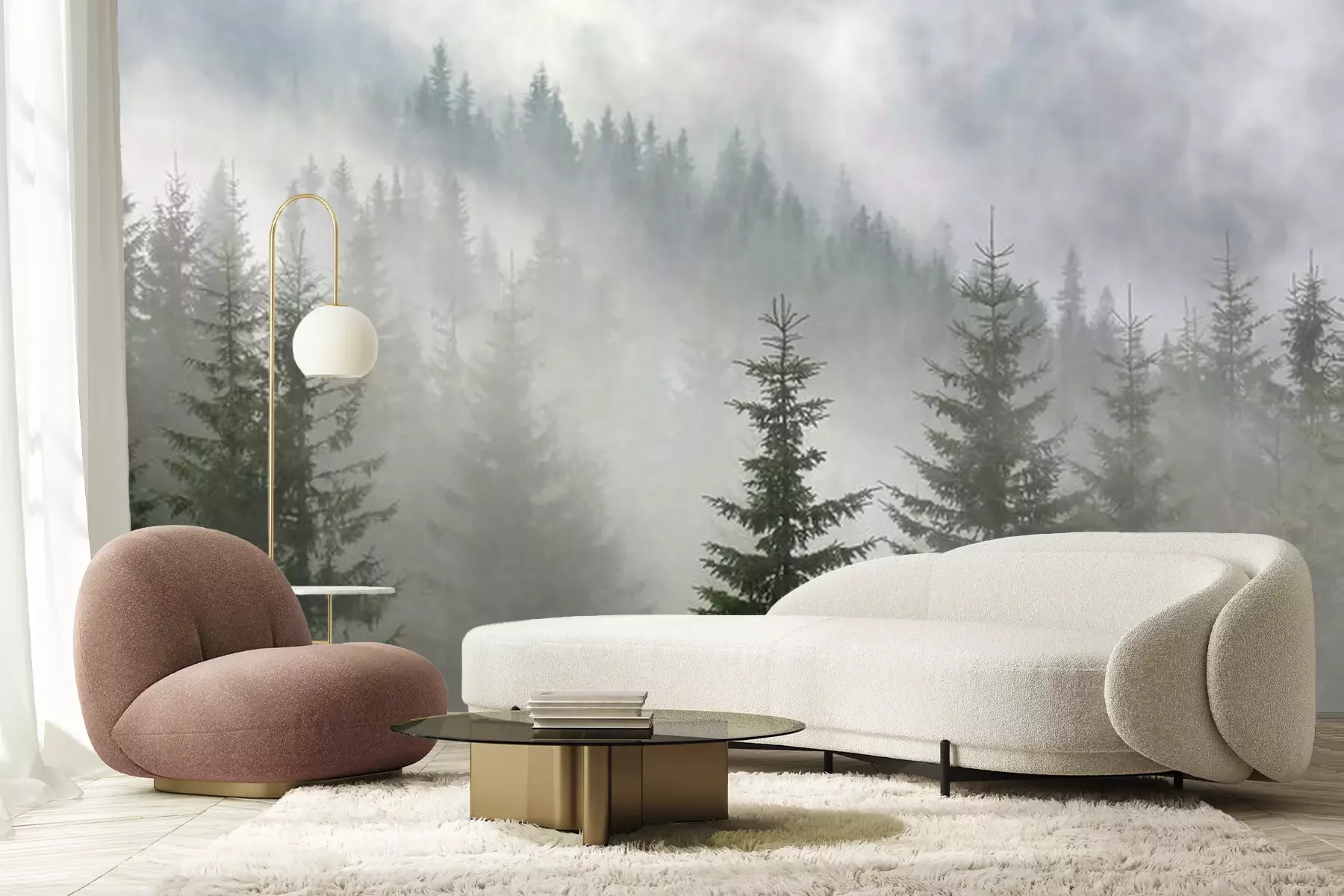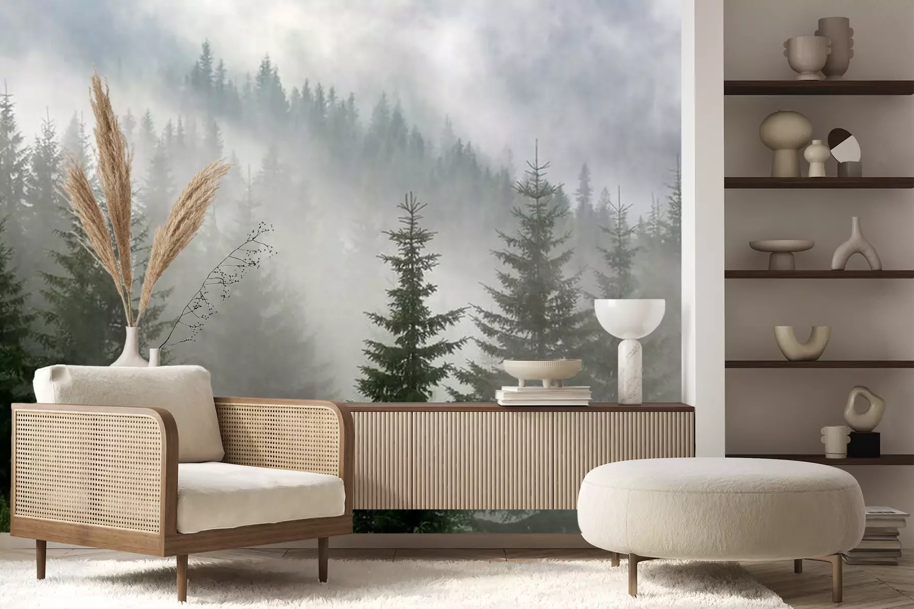 Brume du matin en forêt de montagneLivraison sans problème assurée par des transporteurs de confiance