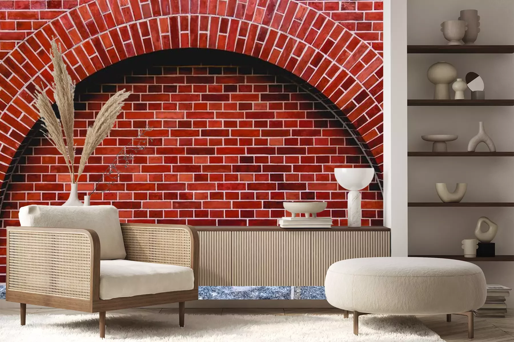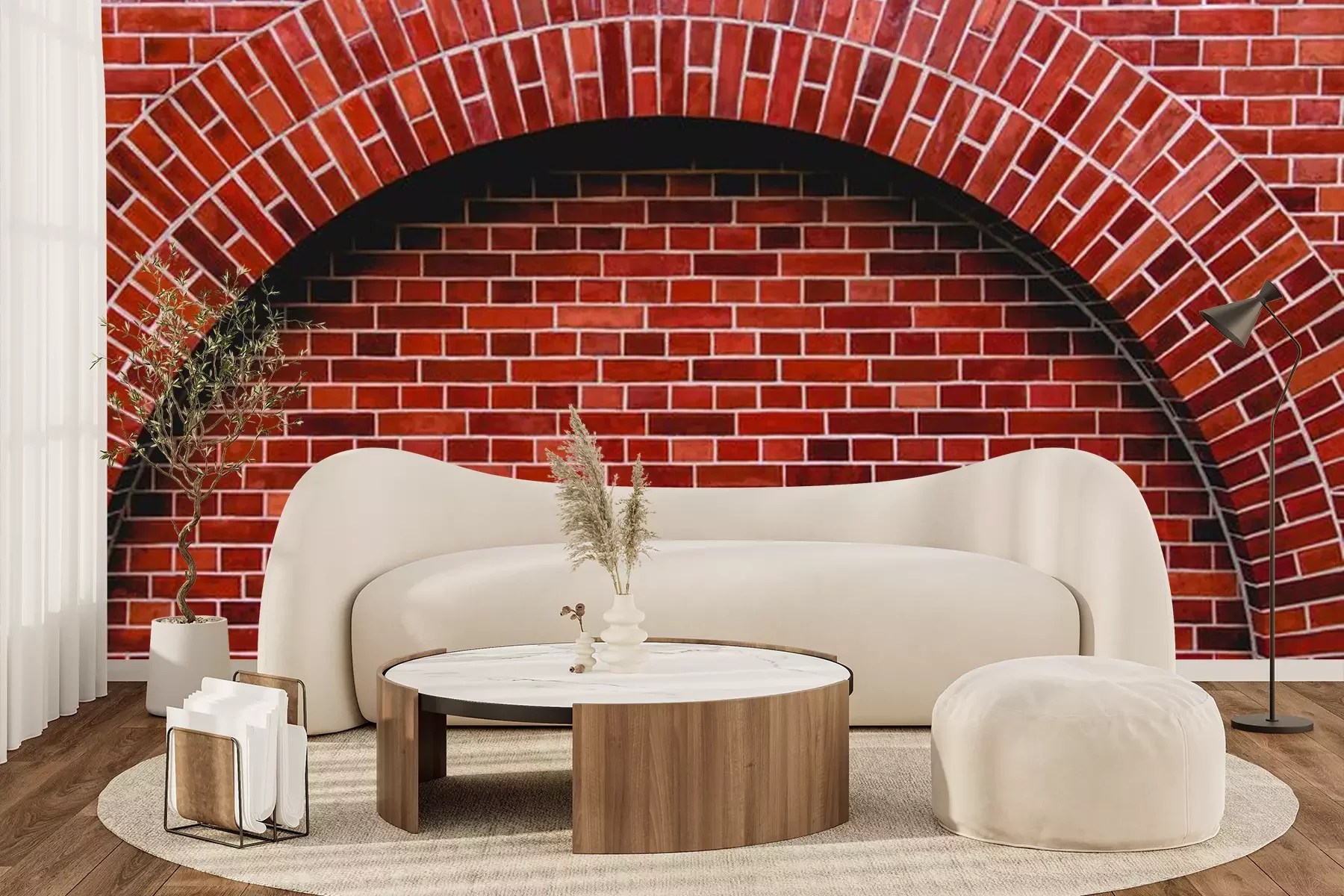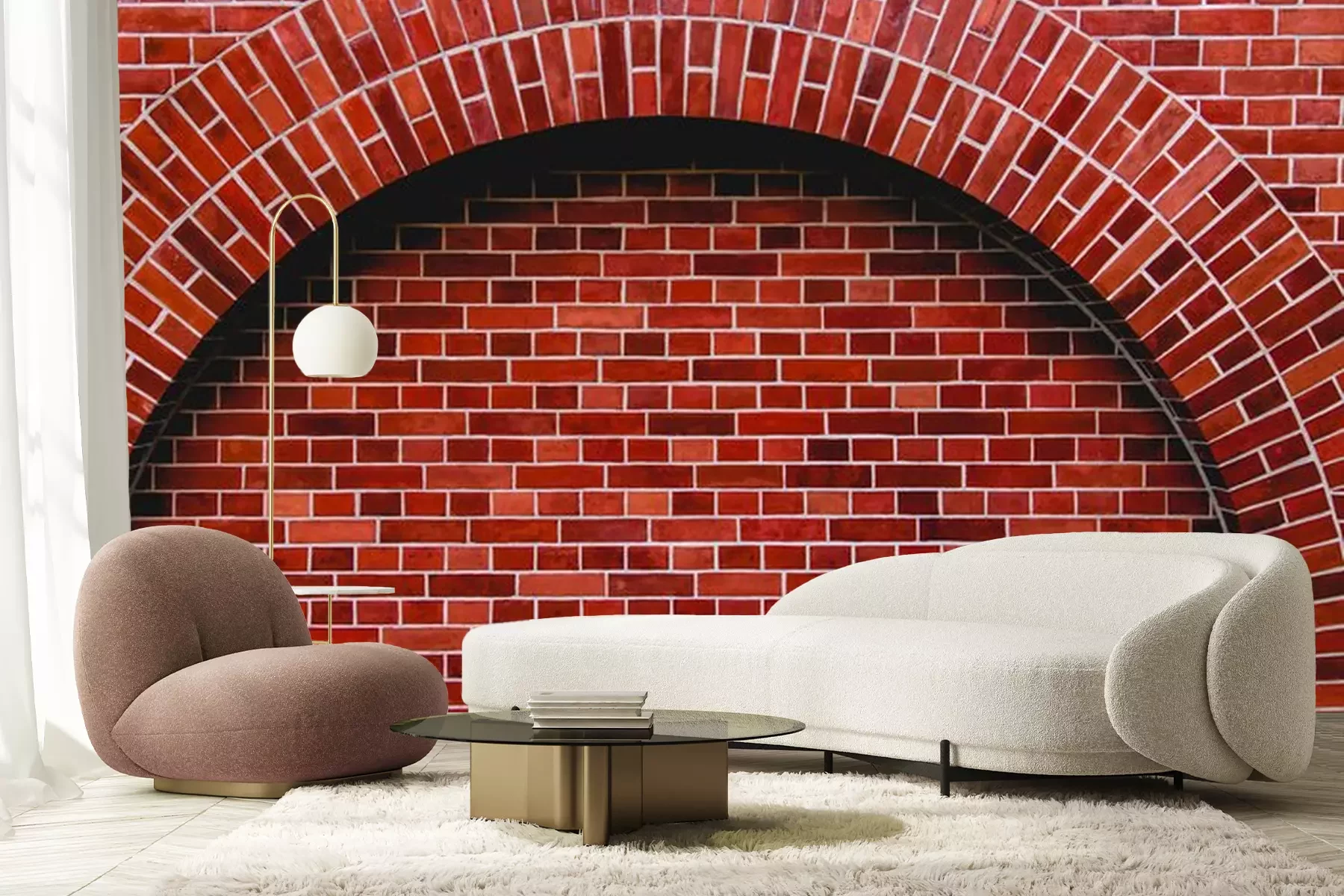 Papier peint  Arc en brique 3d devant un mur
