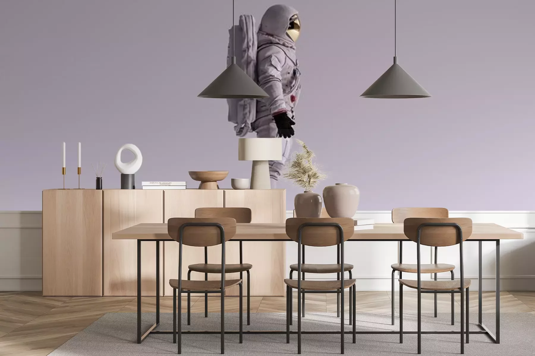 Papier peint  Astronaute de côté sur un fond gris