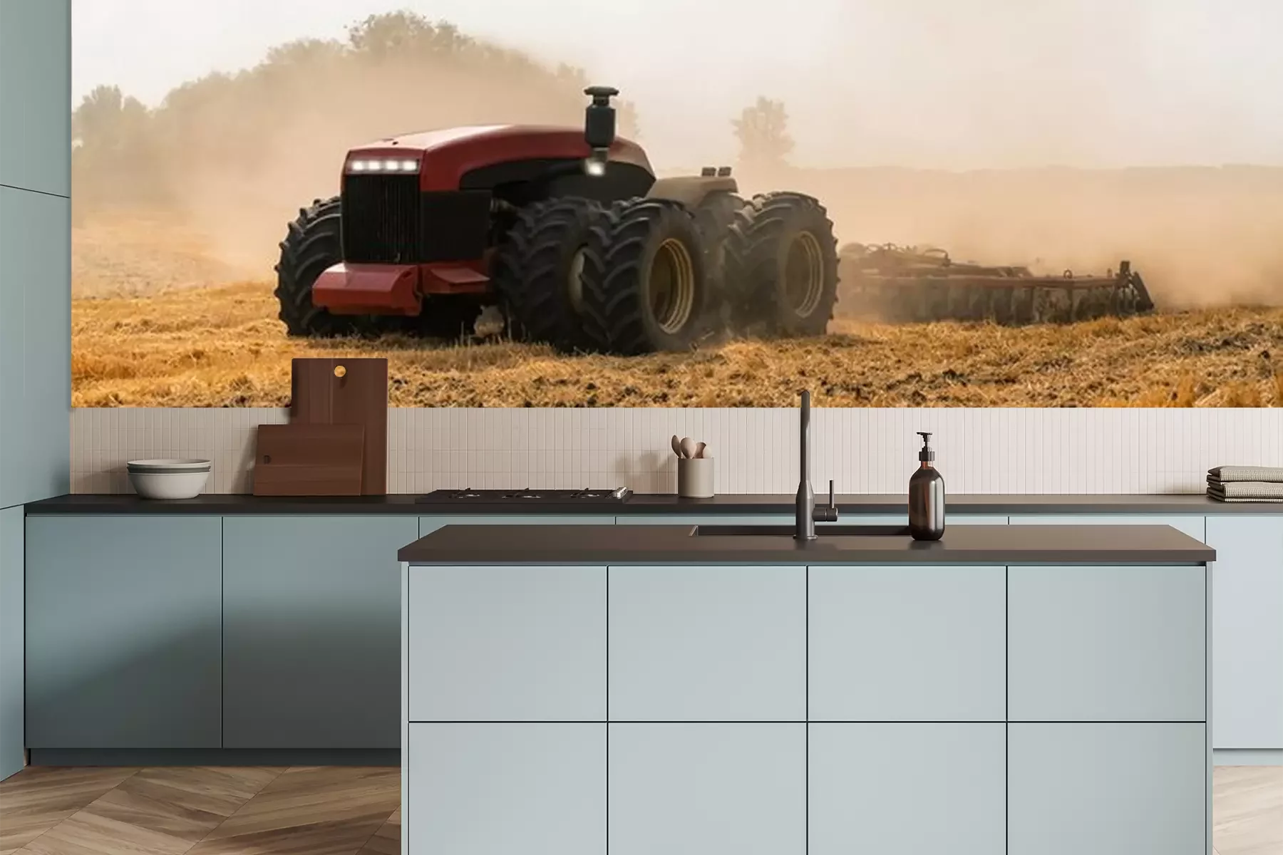 Papier peint  Autonomous tractor working on the field. Smart farming