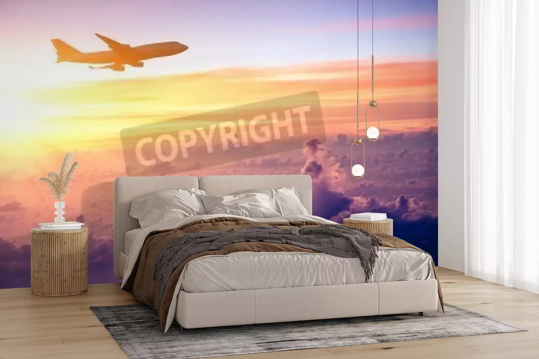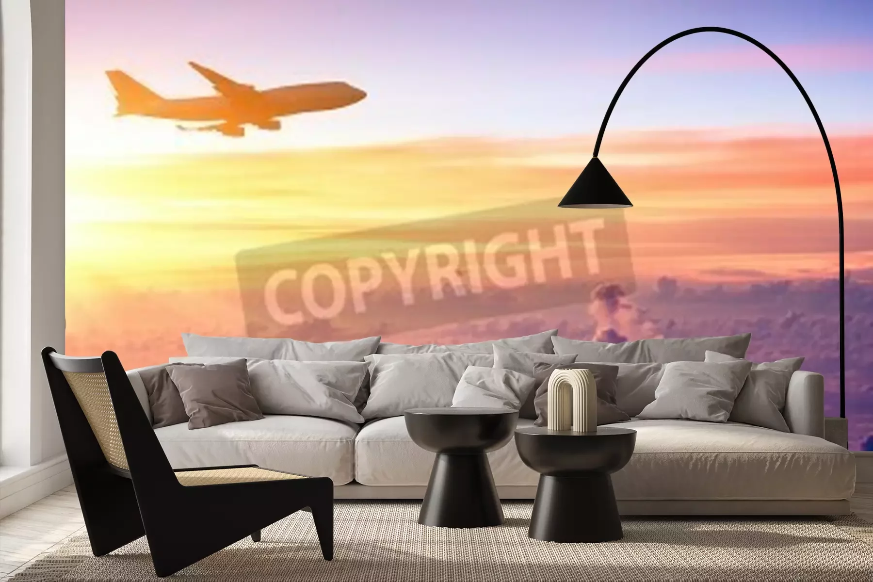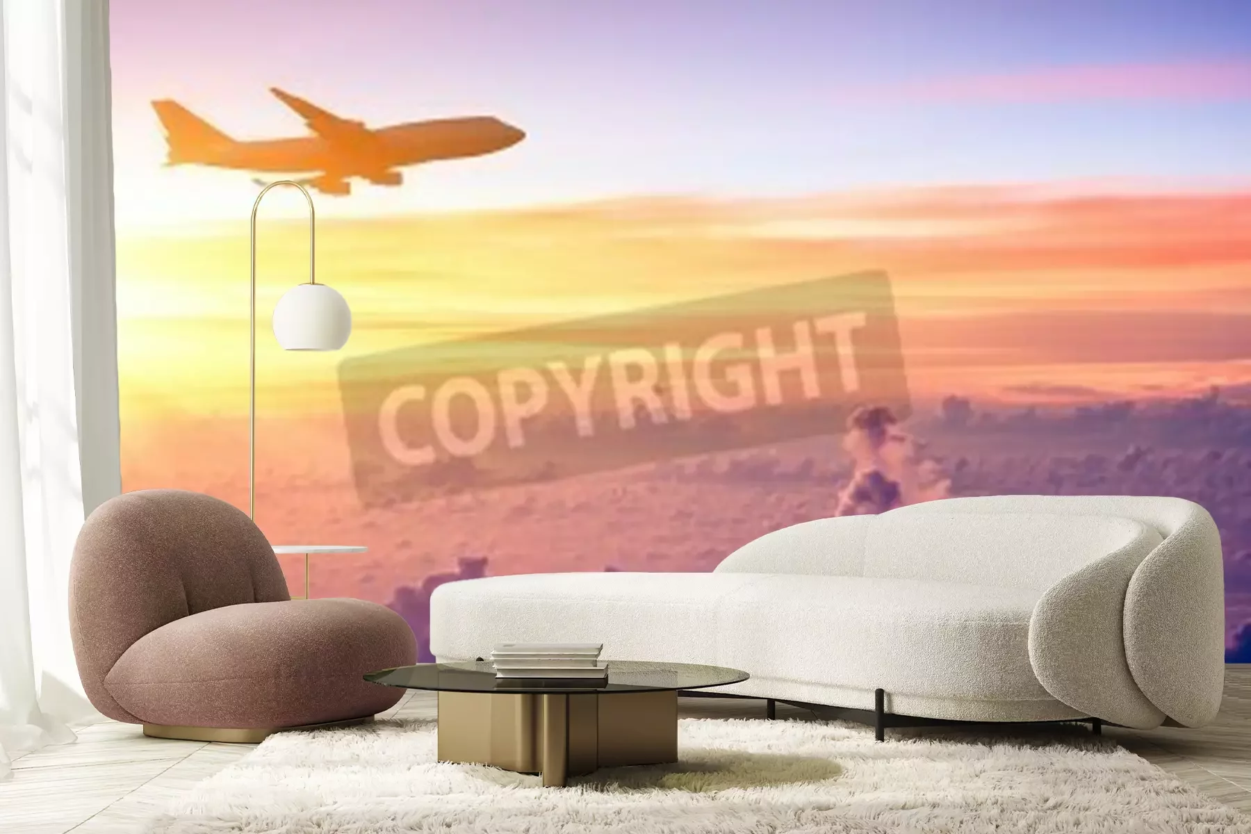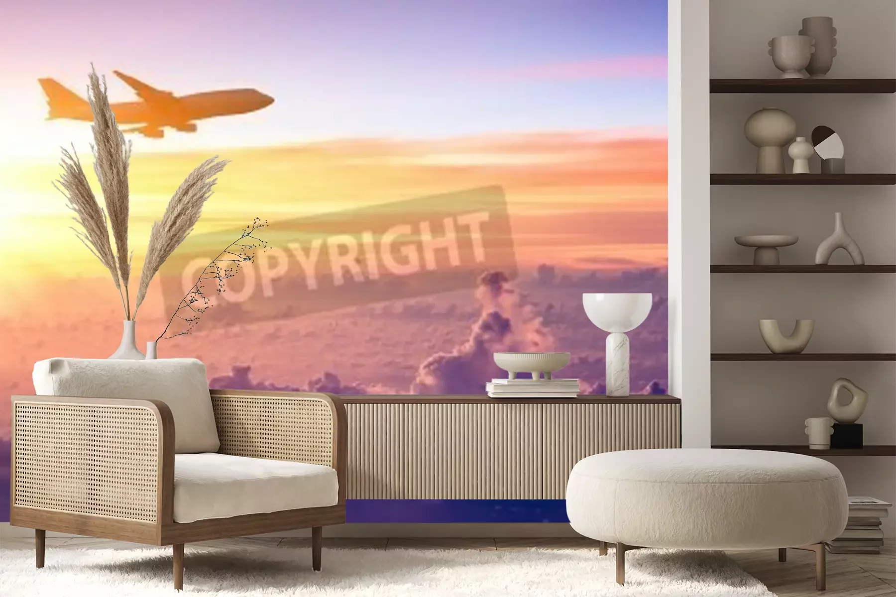 Papier peint  Avion ciel pastel