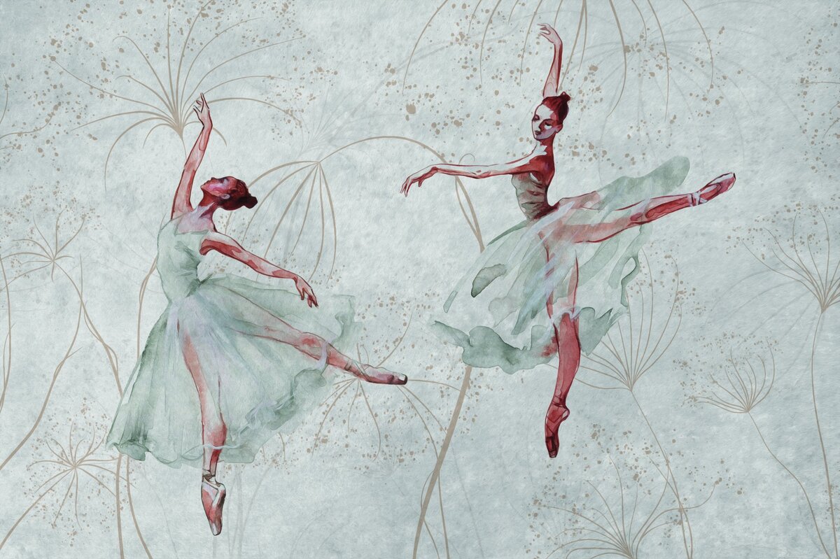 Papier peint : Ballerines dansant en belles robes sur fond de béton