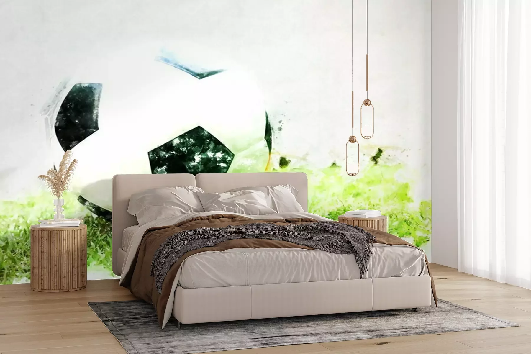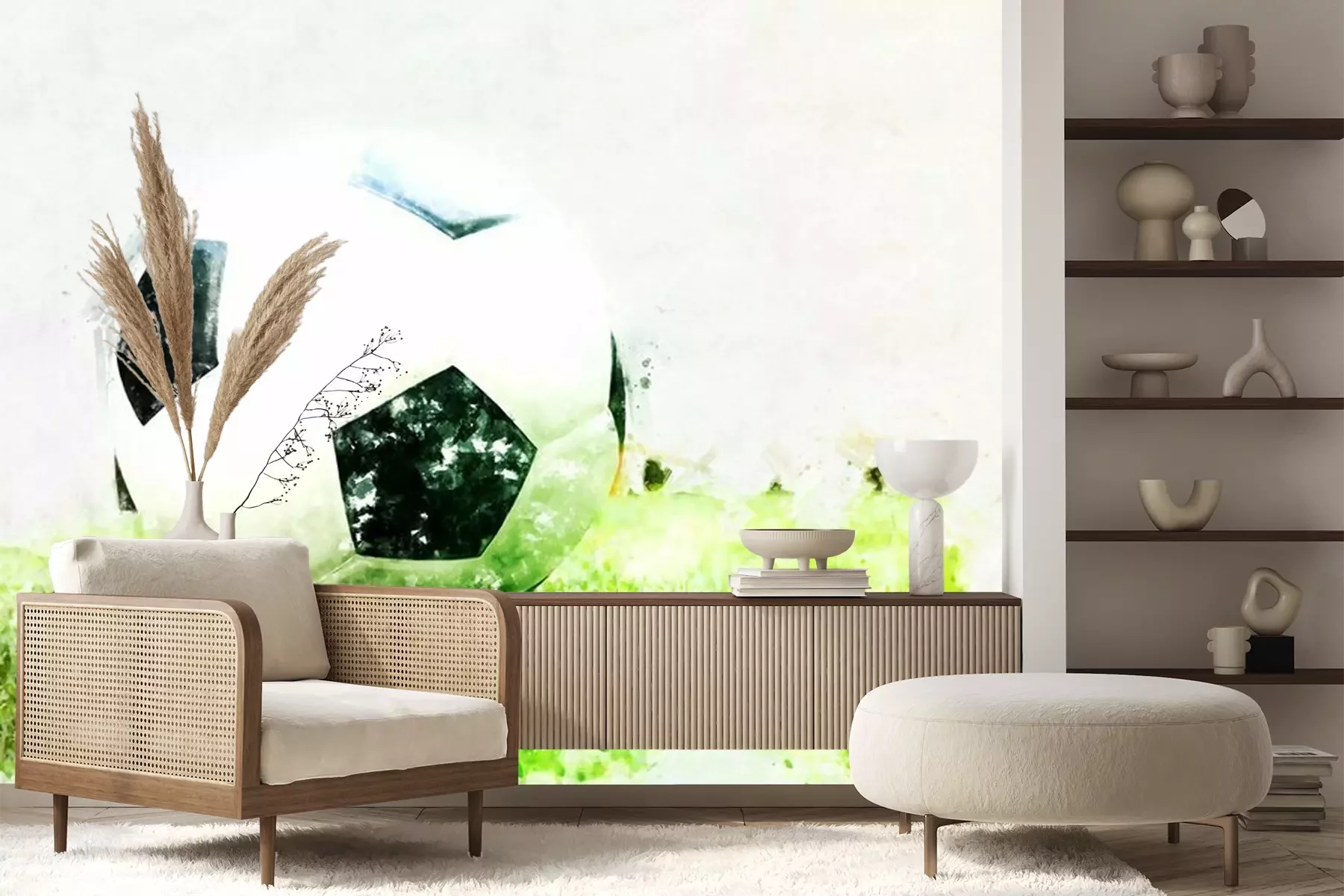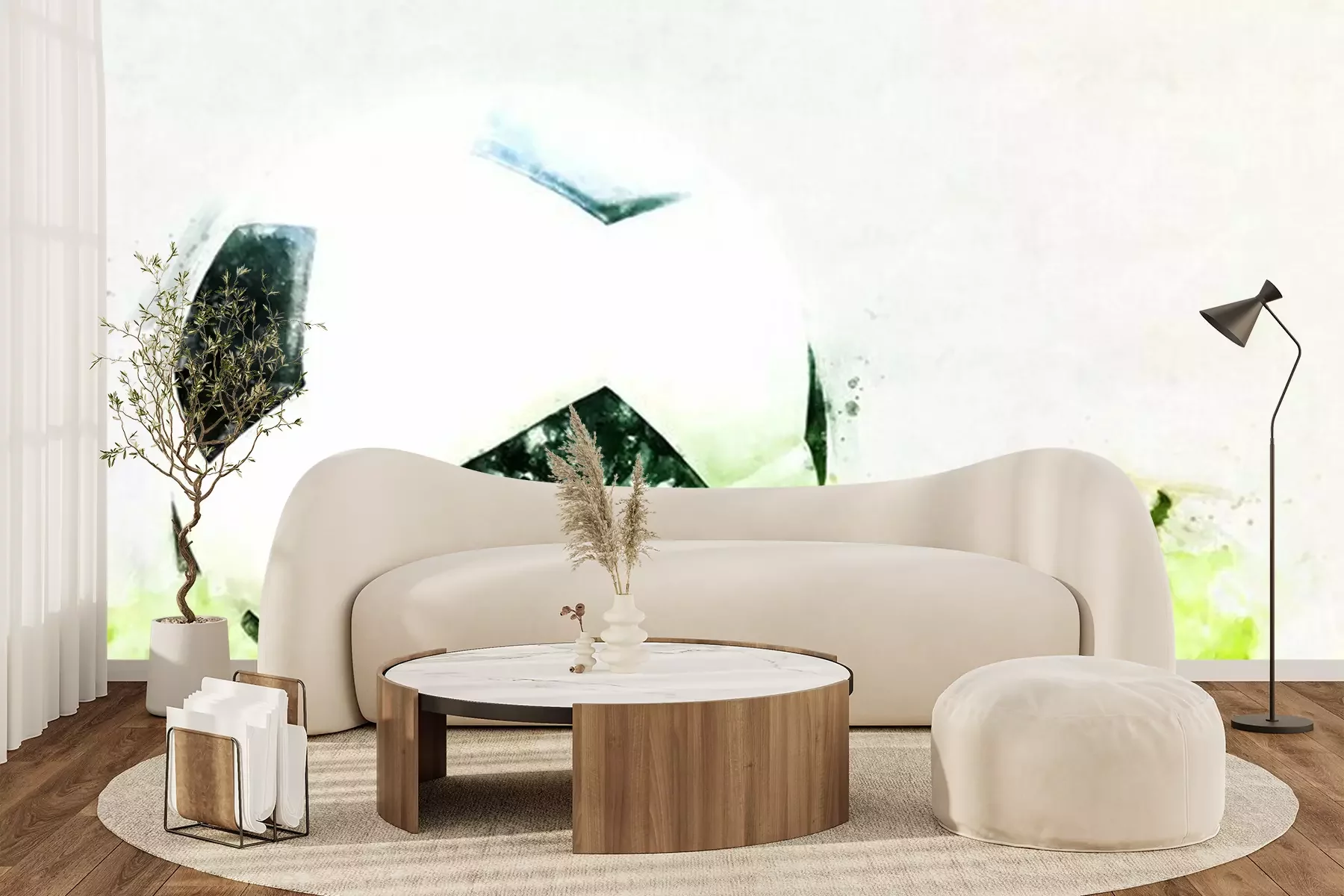 Papier peint  Ballon de football abstrait sur fond de peinture aquarelle herbe verte.