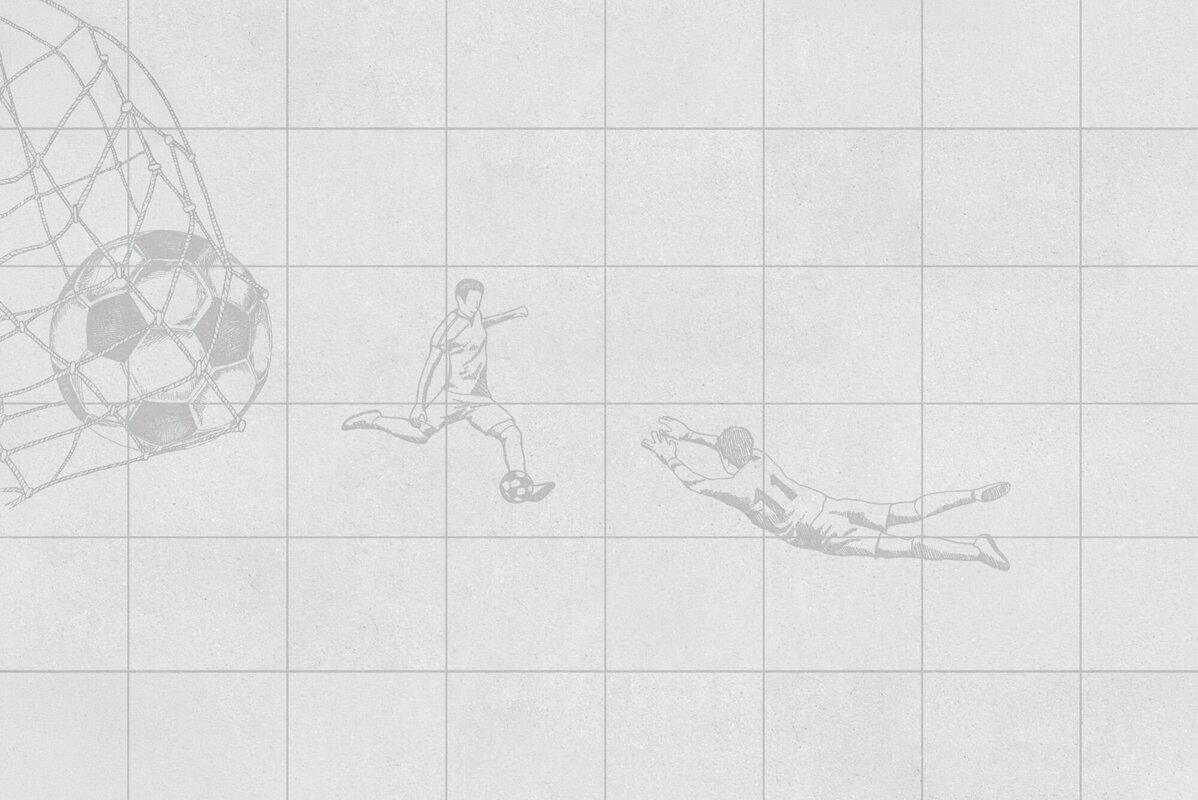 Papier peint : Ballon de football dans le filet et joueurs sur fond texturé