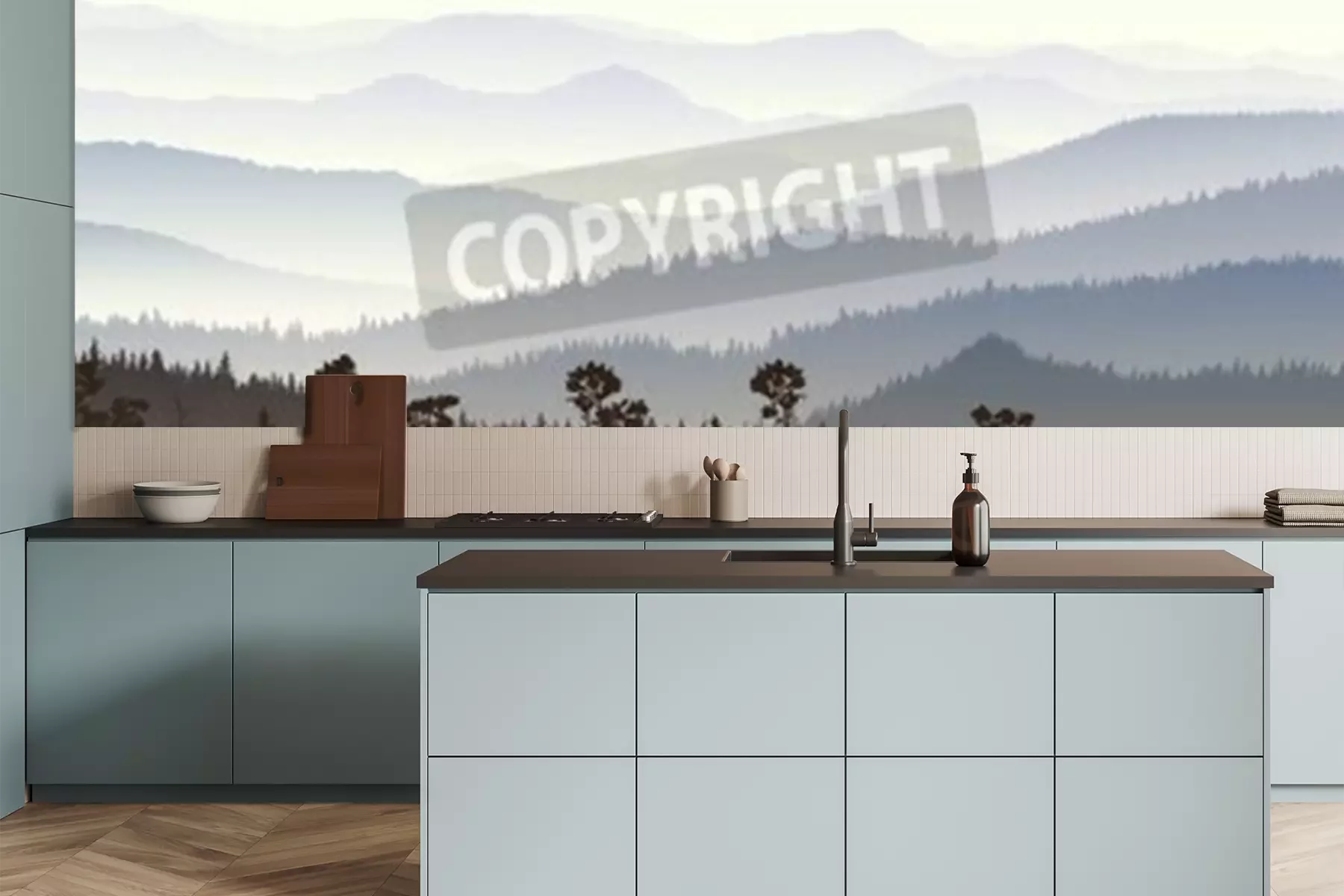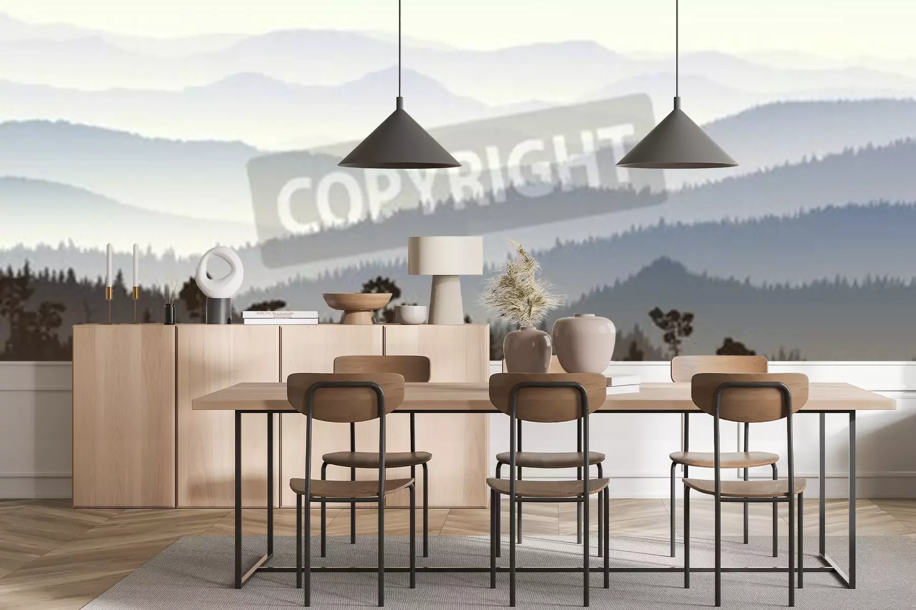 Papier peint  Bandes graphiques de sommets de montagnes et d'arbres