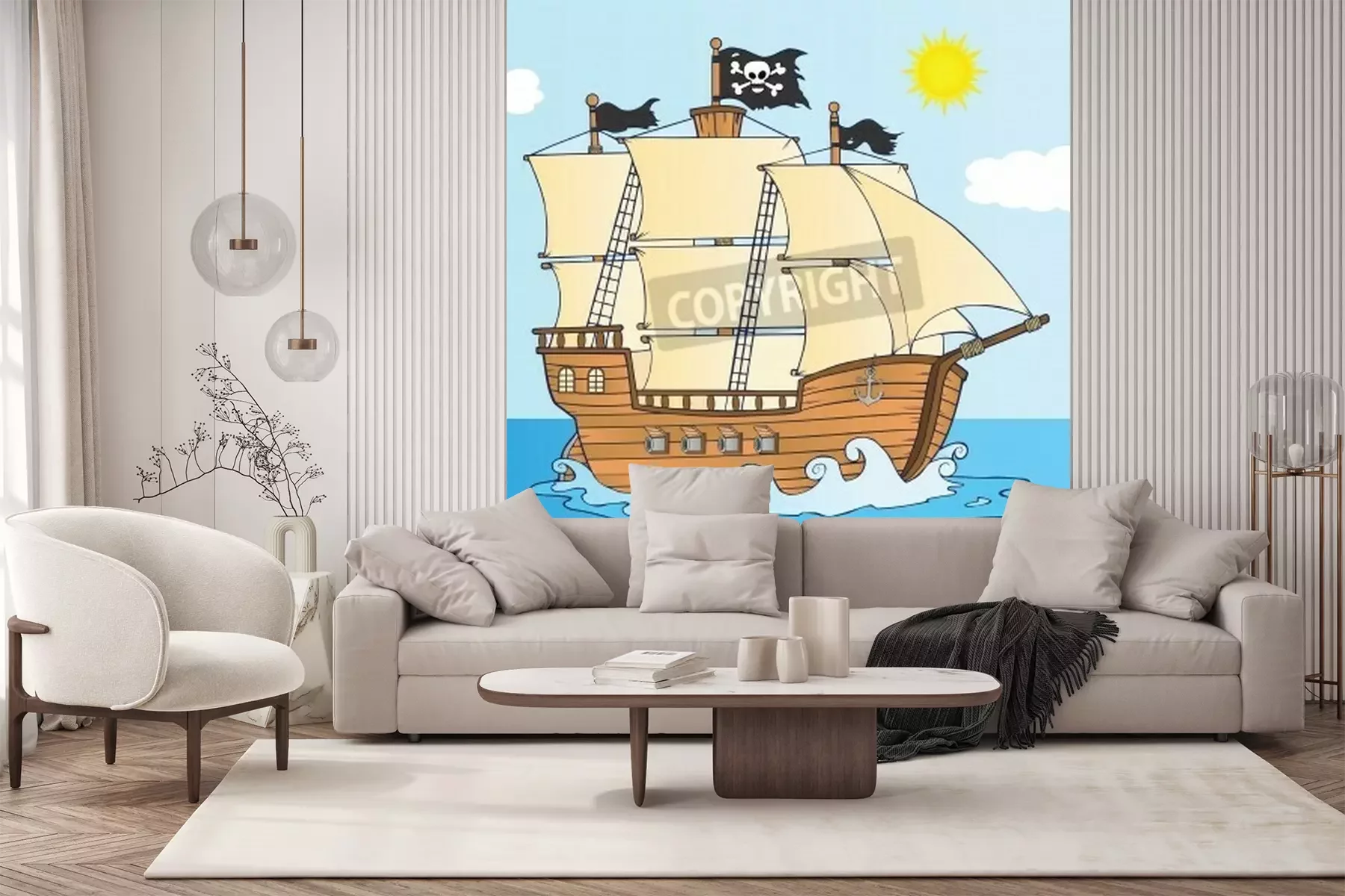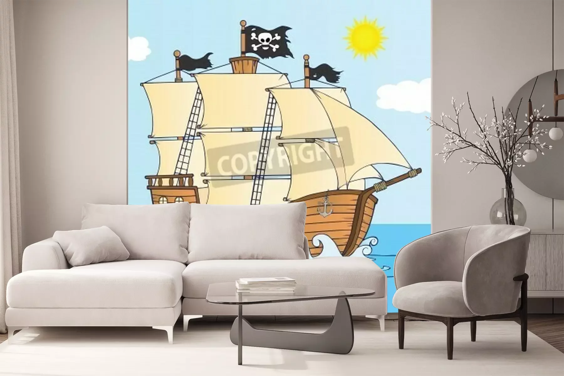 Papier peint  Bateau pirate sur la mer version dessin animé