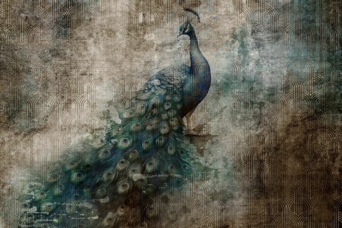 Papier peint : Beau paon abstrait dans le style grunge