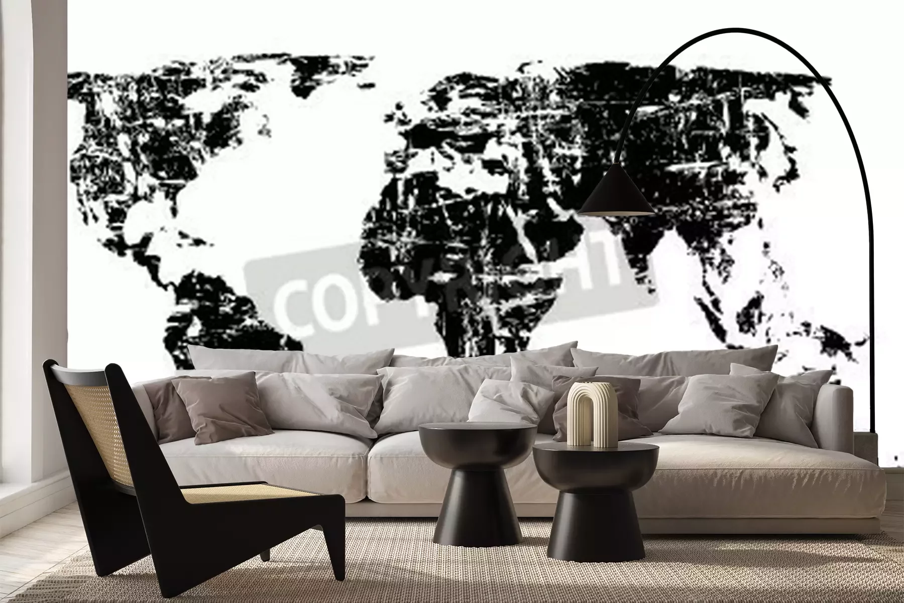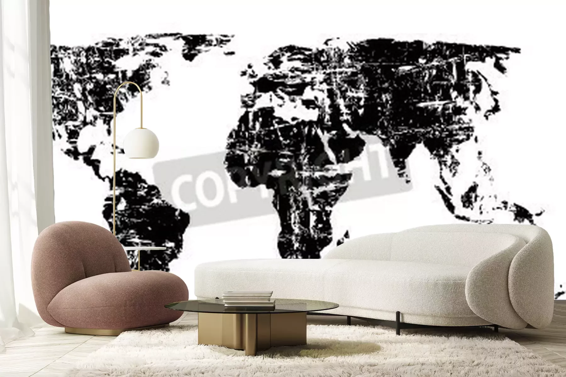 Papier peint  Black grunge world map on a white background. Vector illustration.