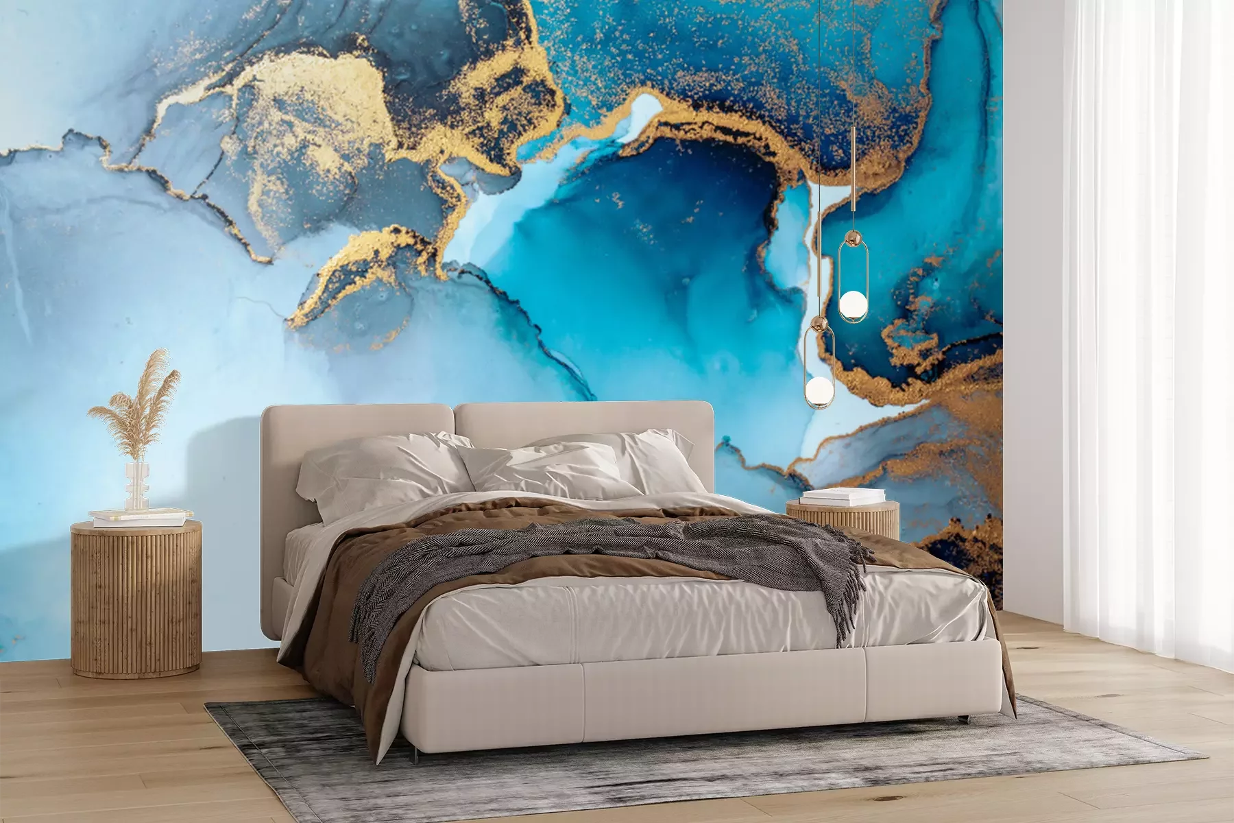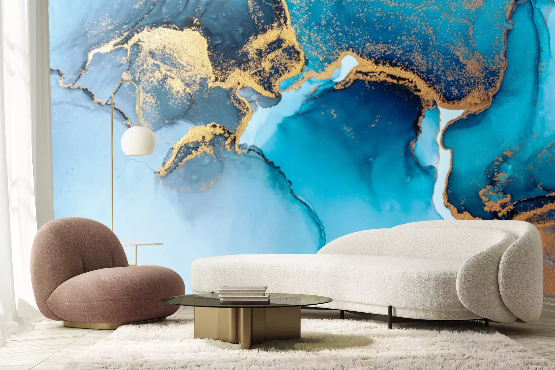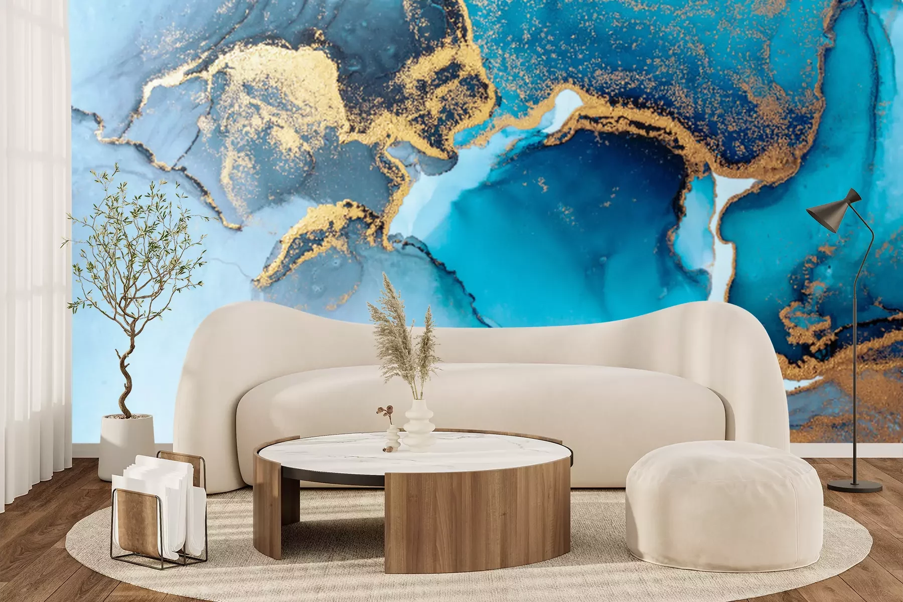 Papier peint  Bleu en composition avec des peintures marbrées