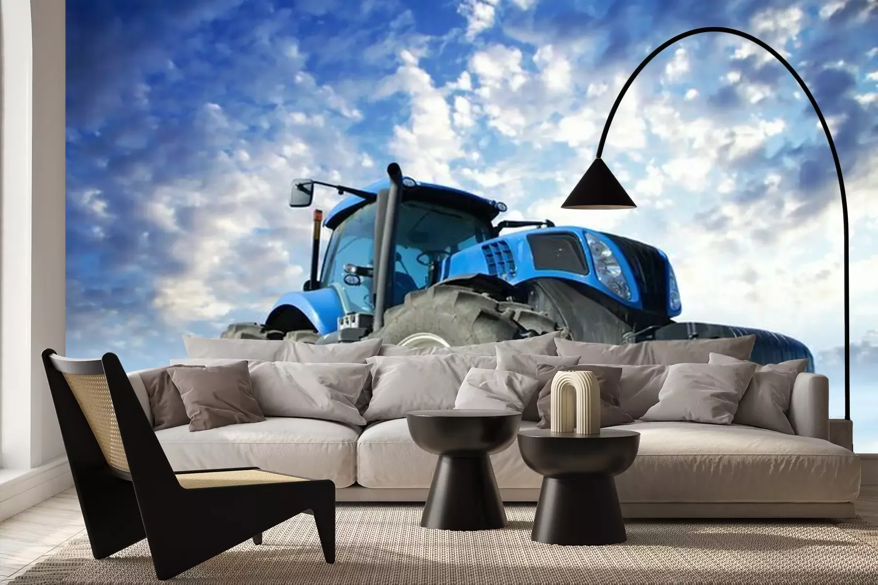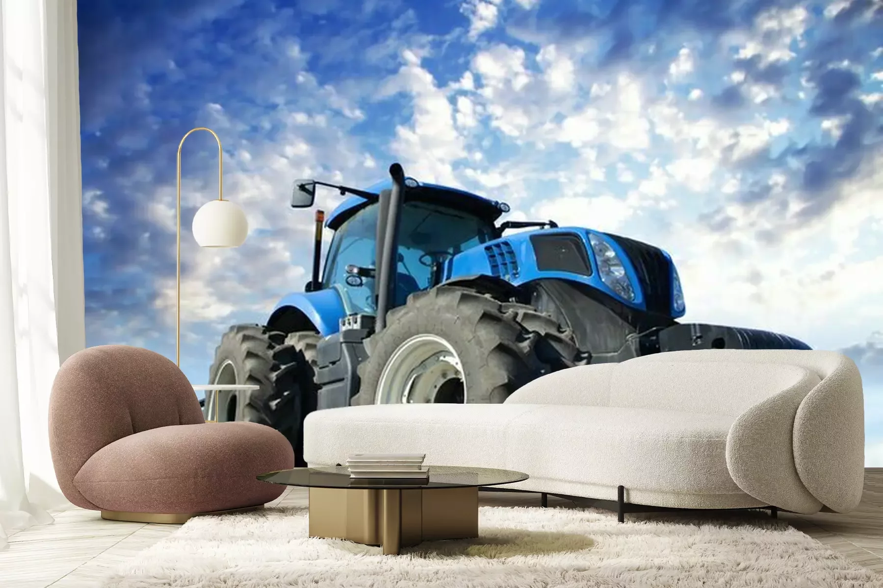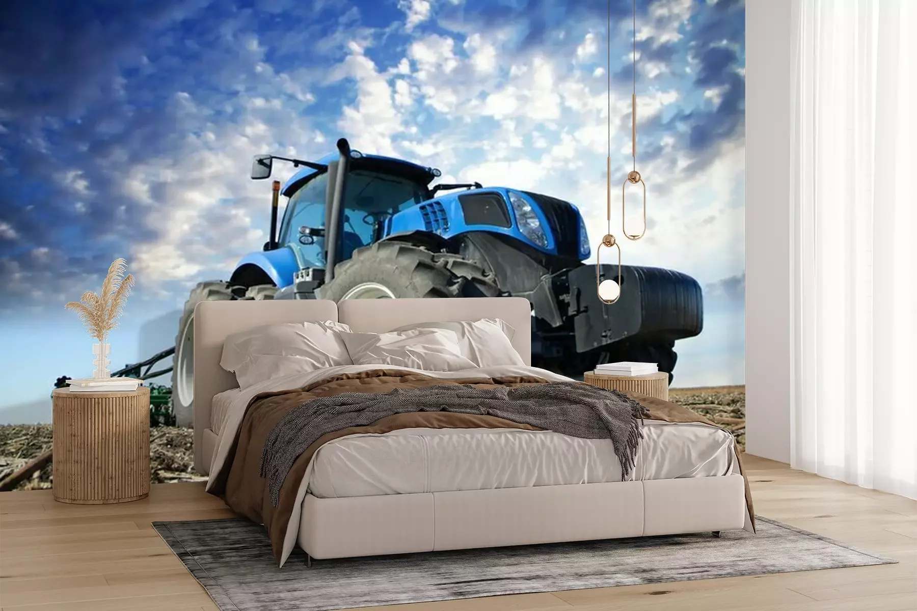 Tracteur dans un champPapier peint