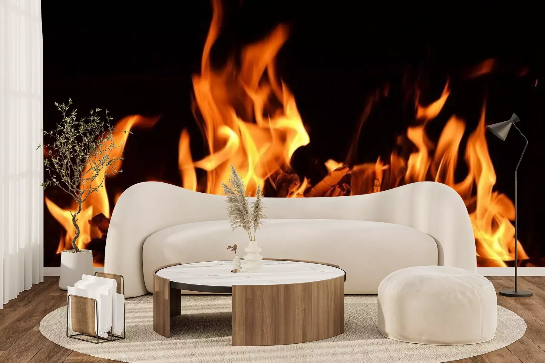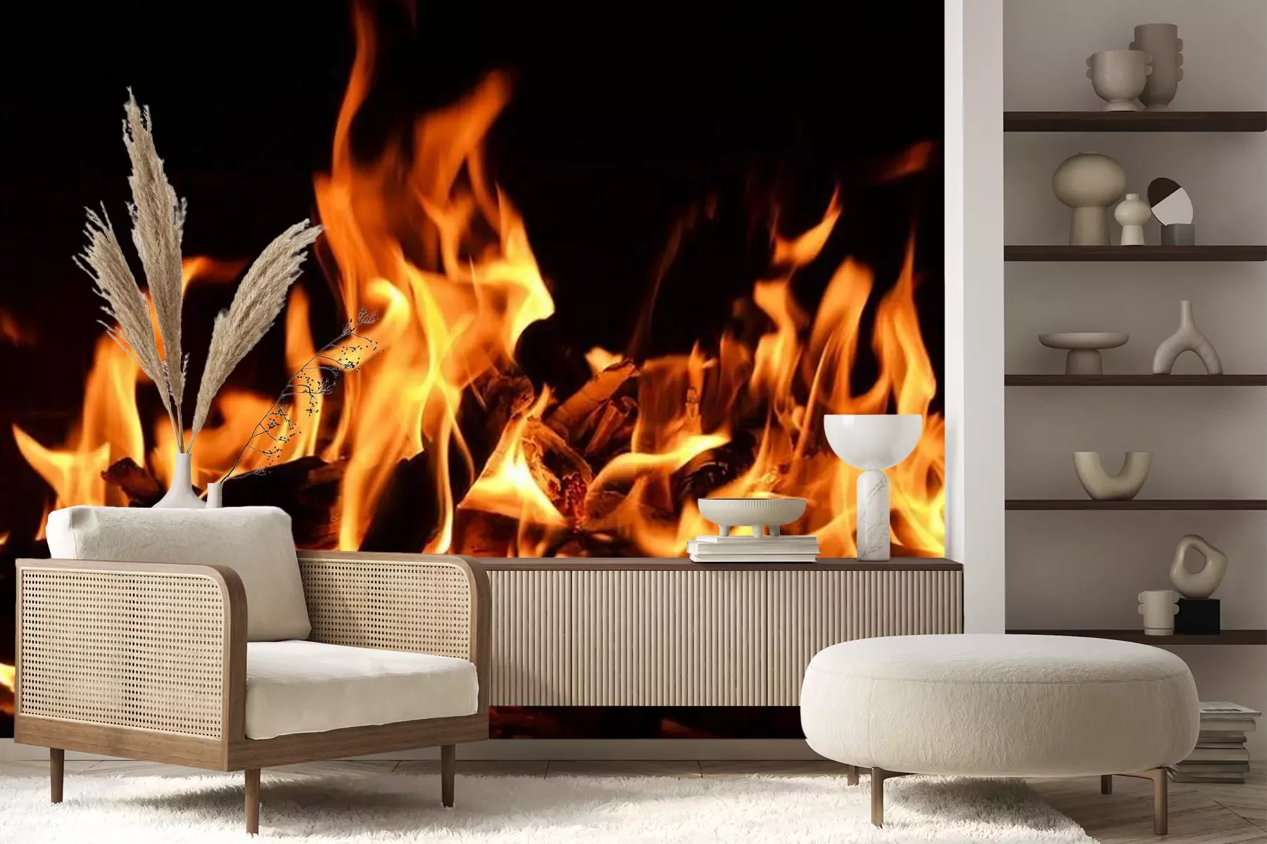 Papier peint  Bois dans des flammes