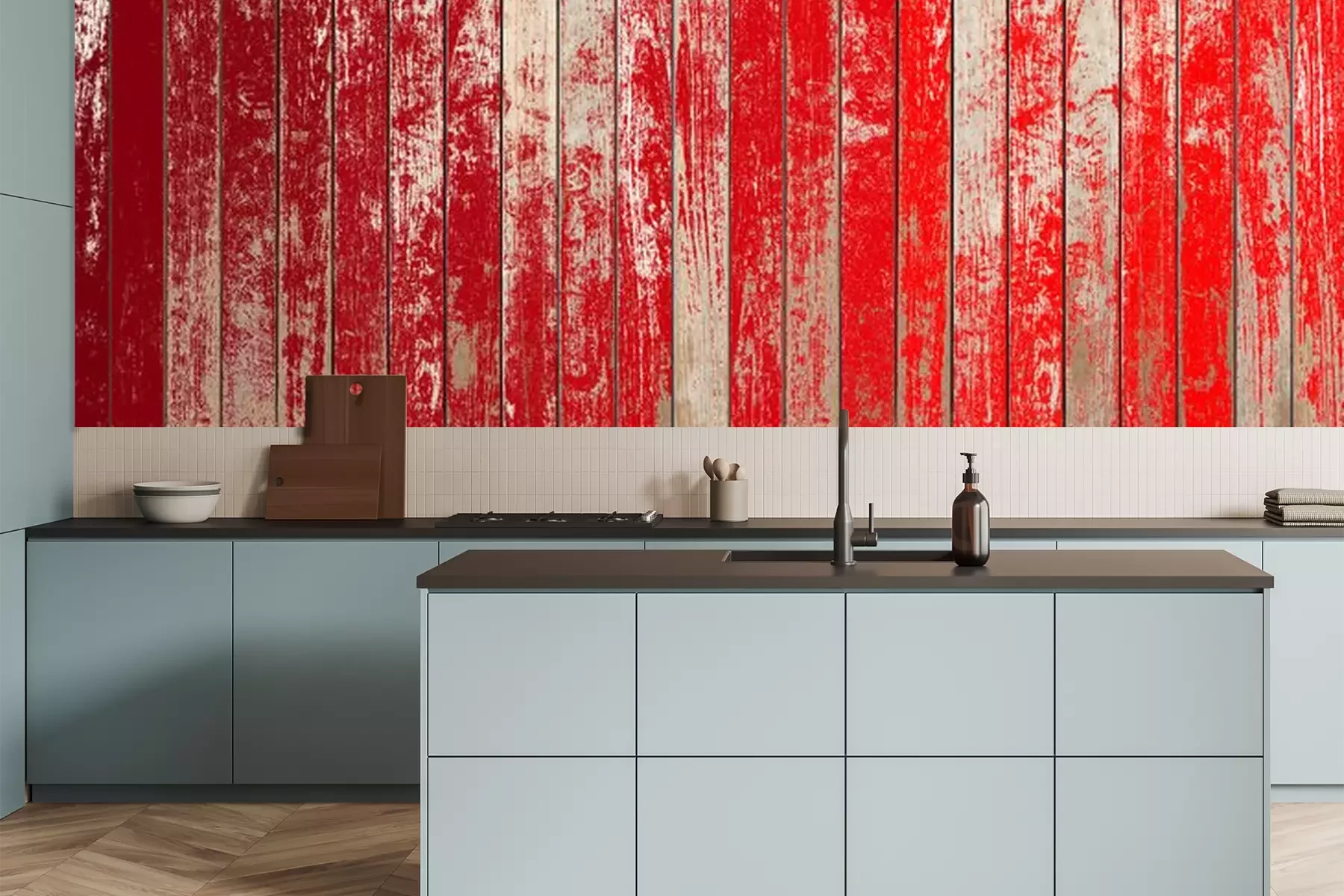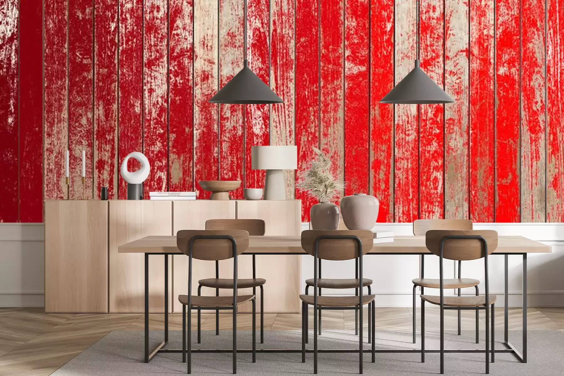 Papier peint  Bois vintage avec peinture rouge qui se détache