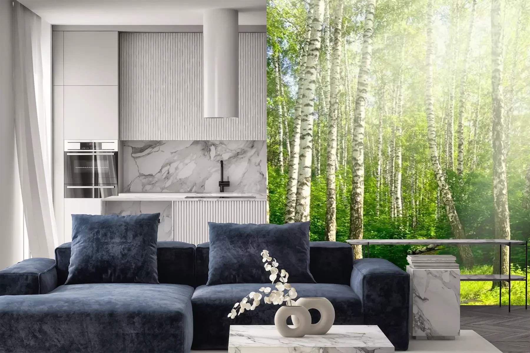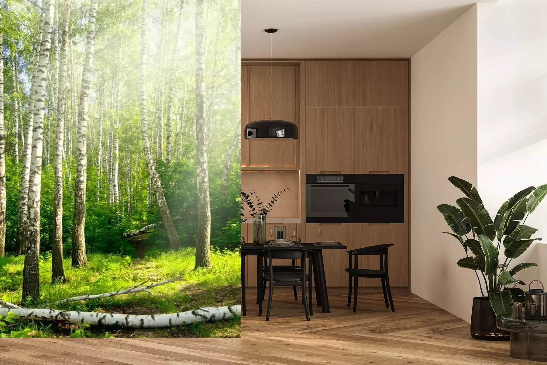 Papier peint  Bouleaux couchés dans la forêt