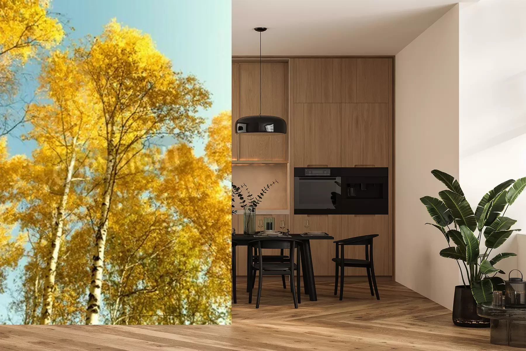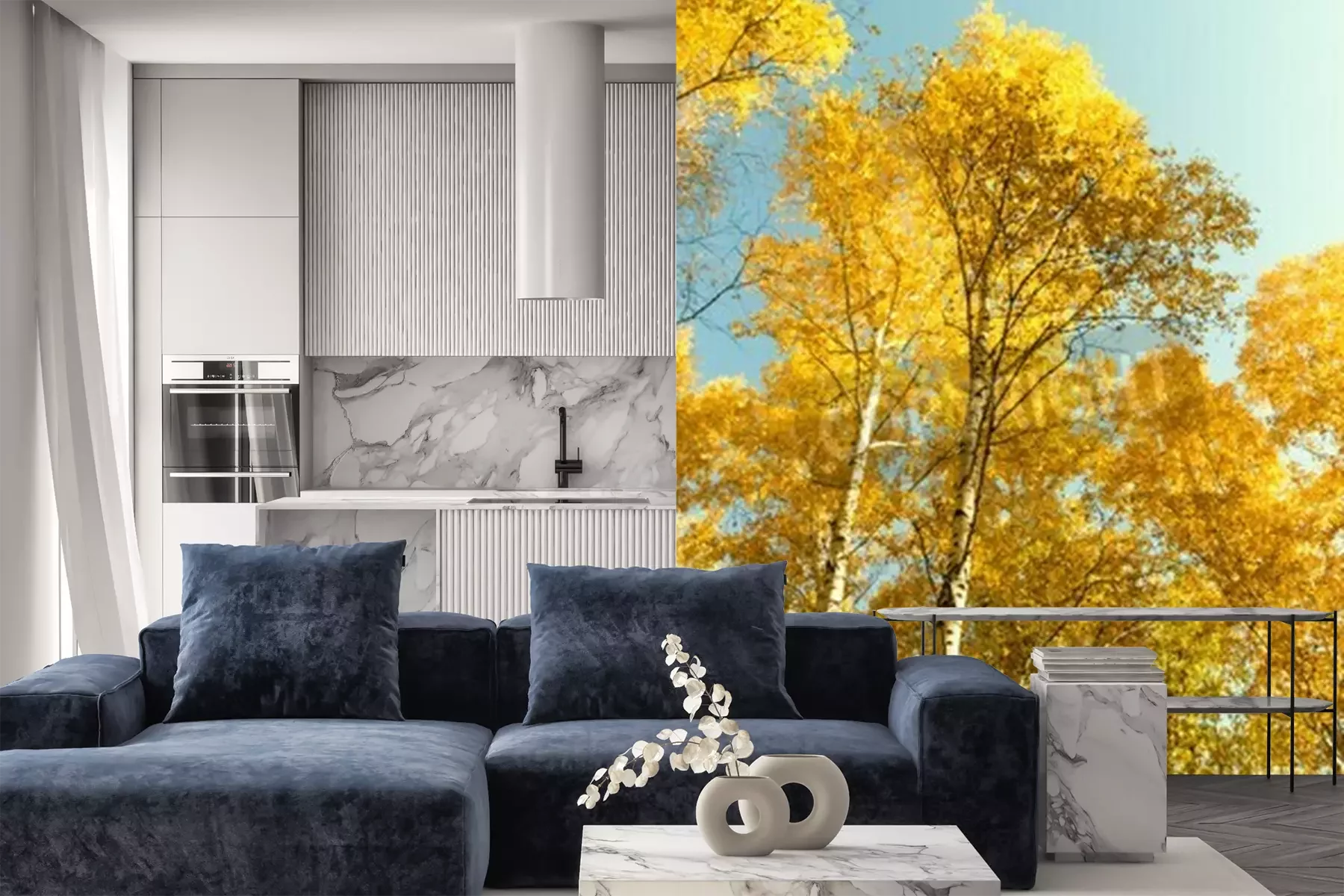 Papier peint  Bouleaux d'automne contre le ciel