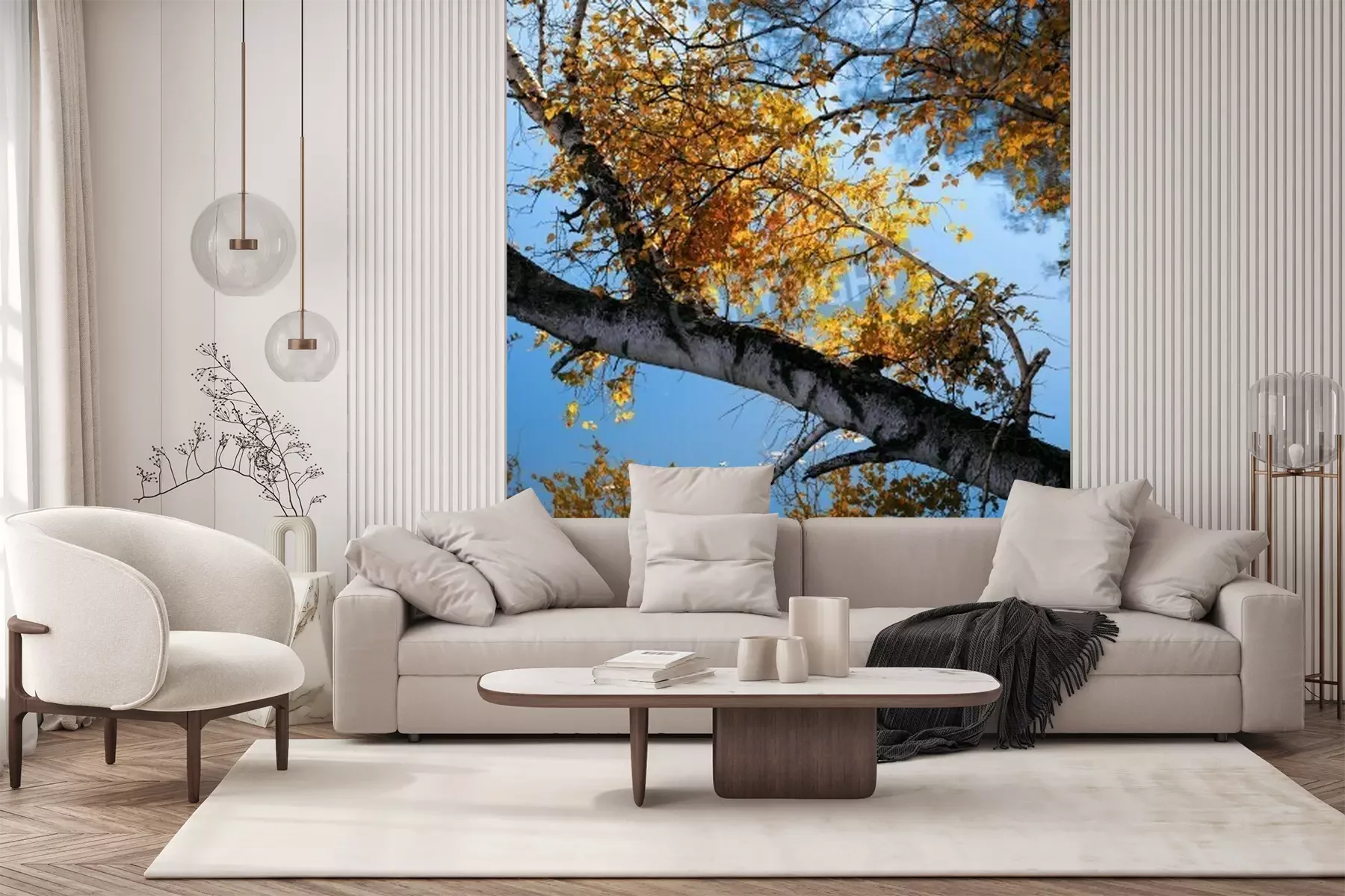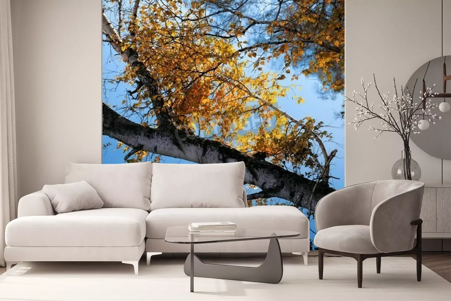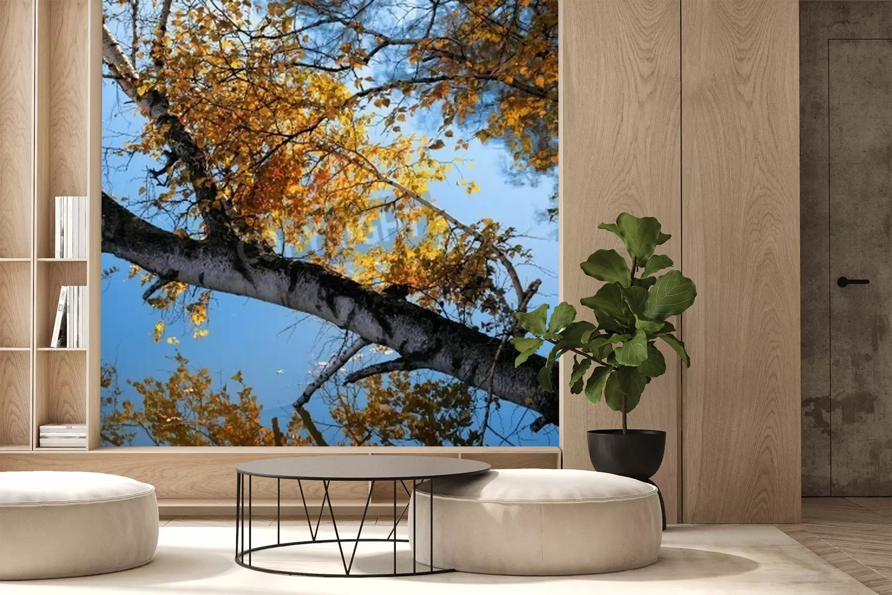 Papier peint  Bouleaux et feuilles d'automne