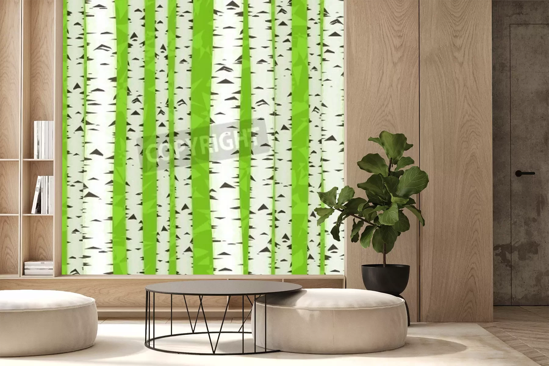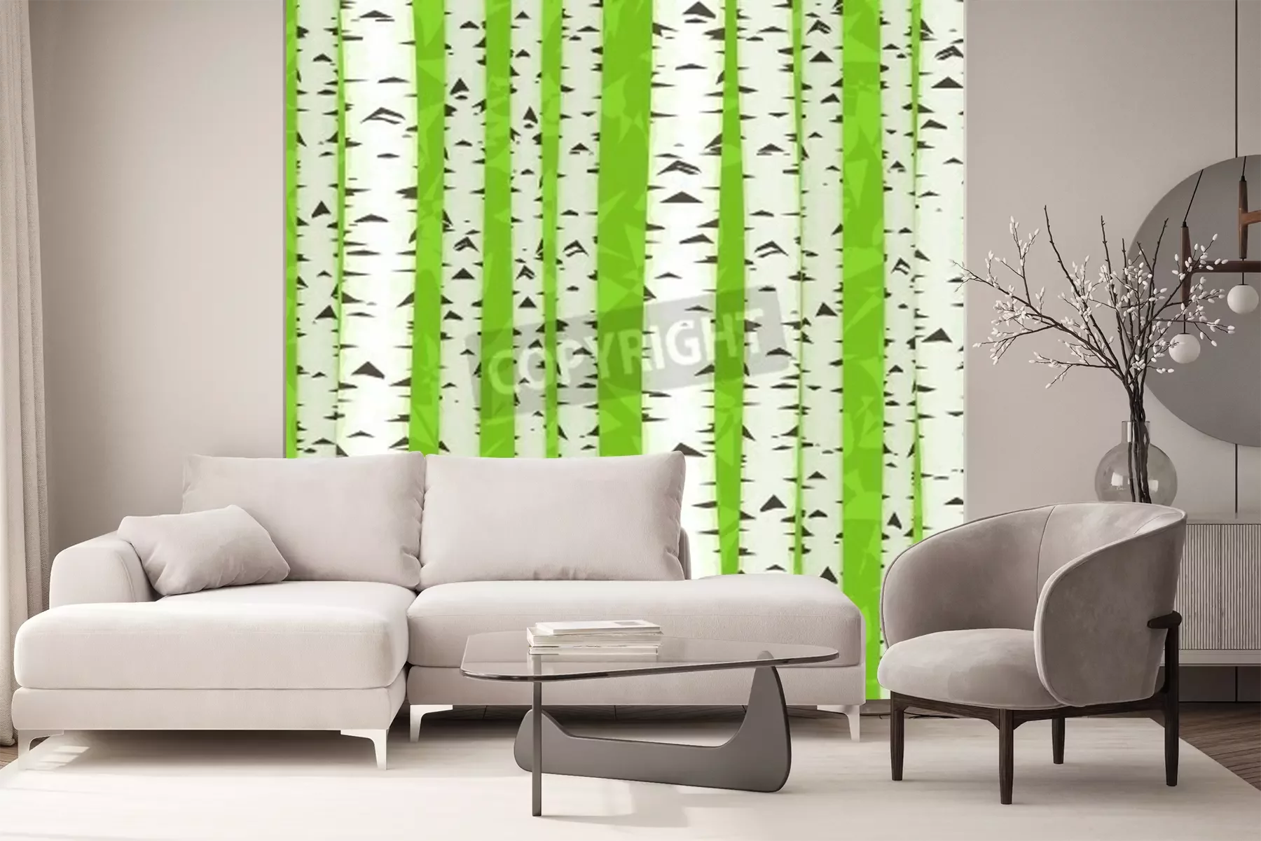 Papier peint  Bouleaux graphiques sur un fond vert