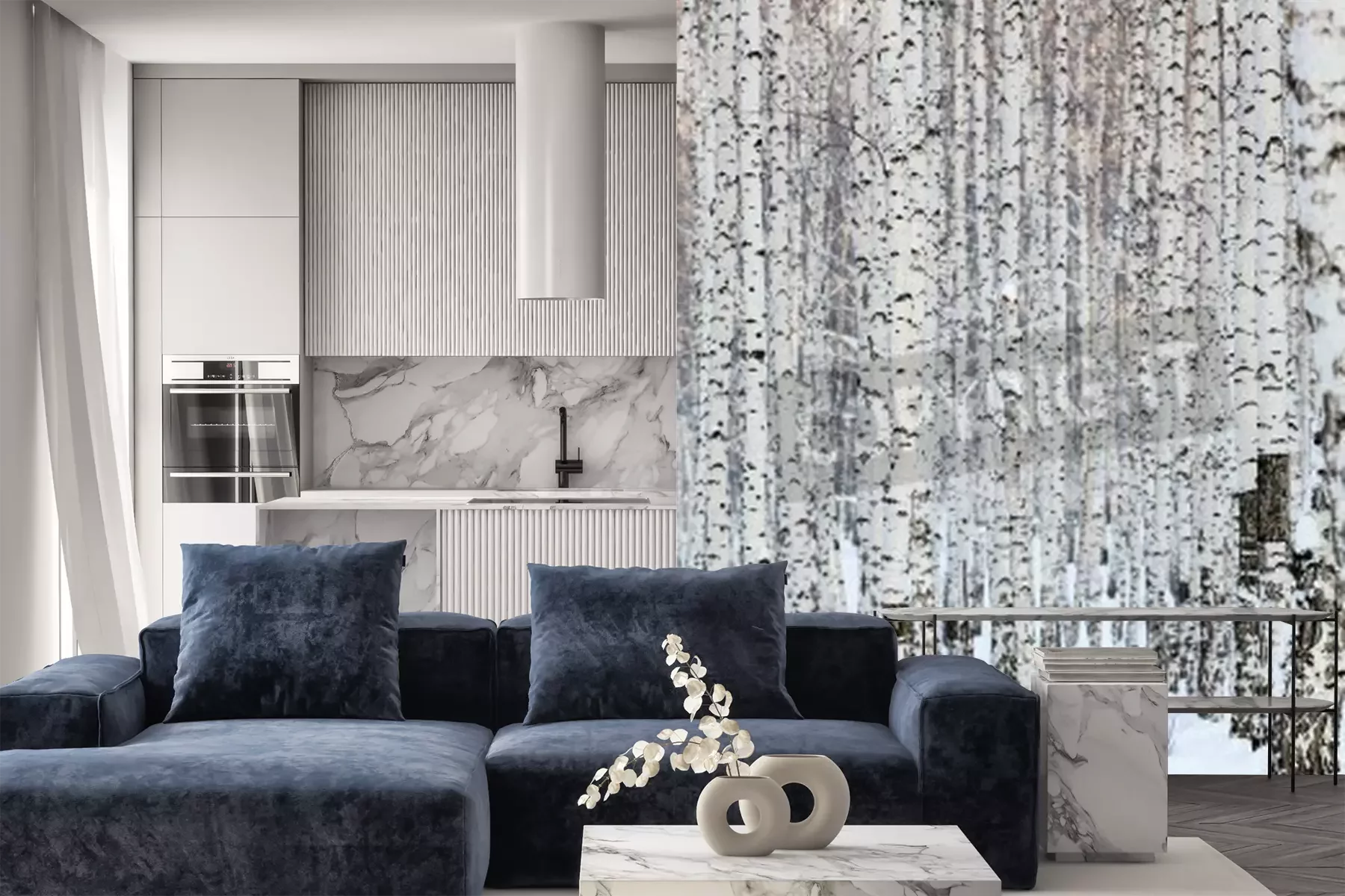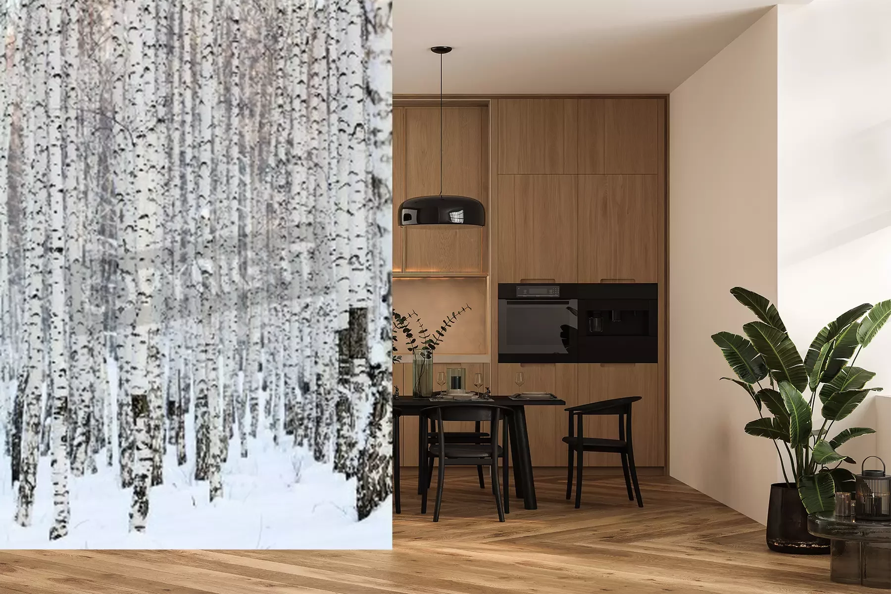 Papier peint  Bouleaux noirs et blancs dans les congères