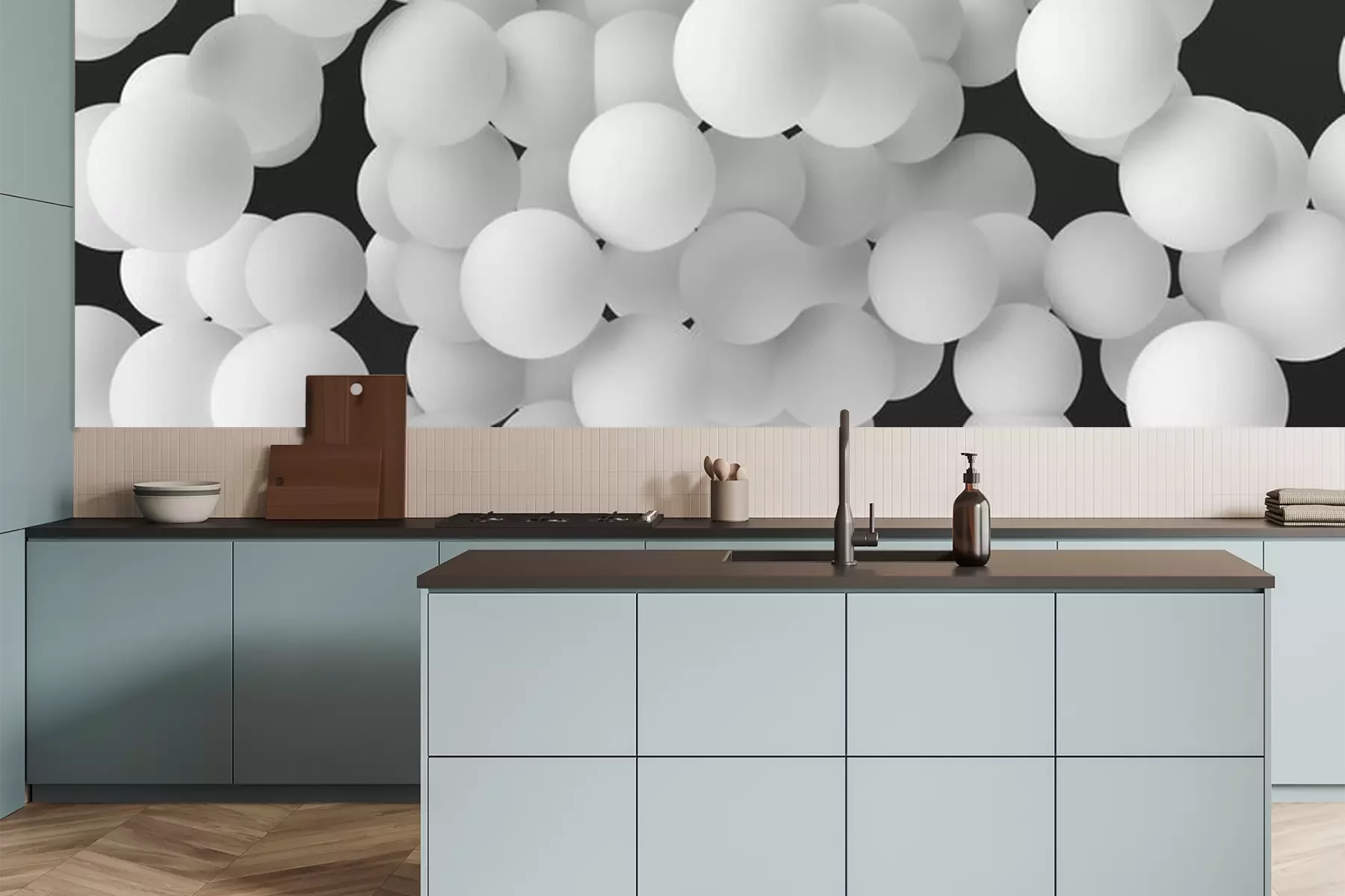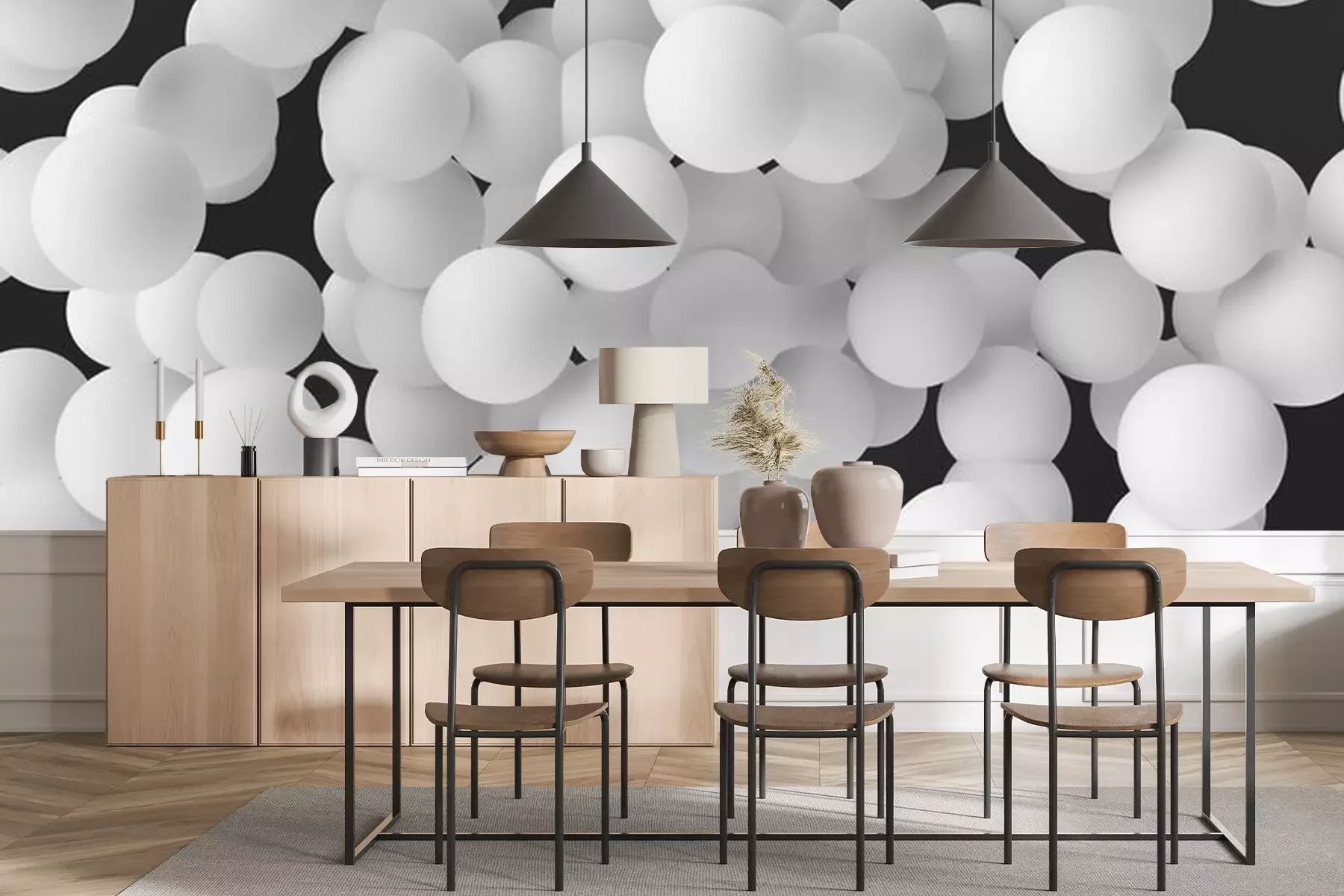 Papier peint  Boules blanches sur fond noir