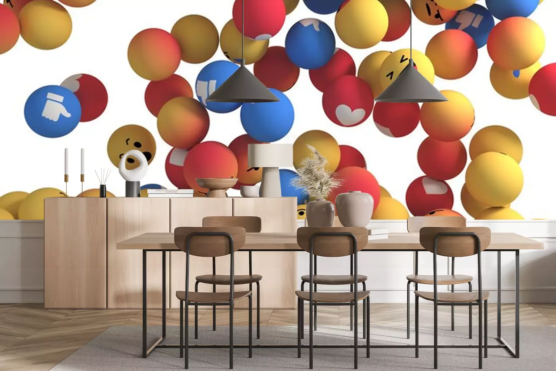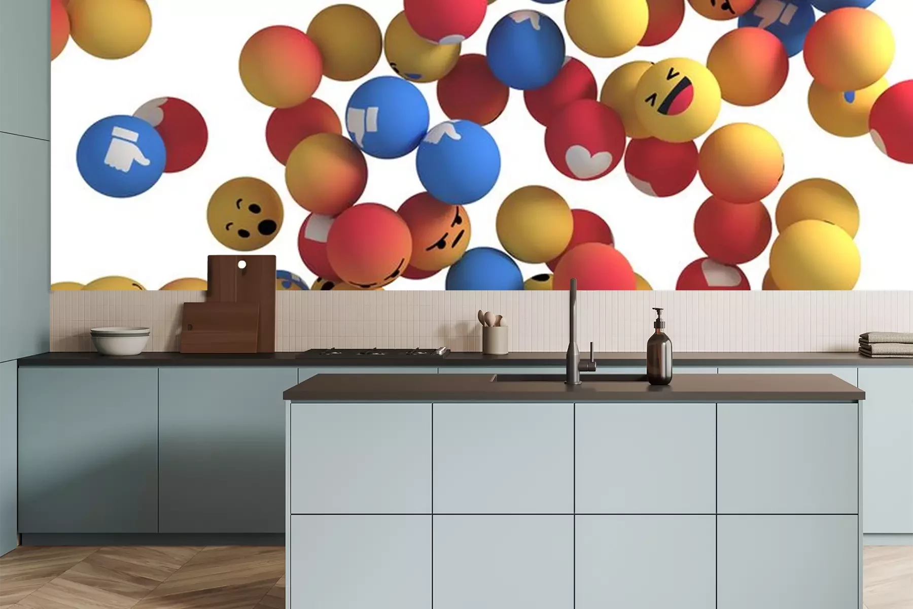 Papier peint  Boules emojis sur fond blanc