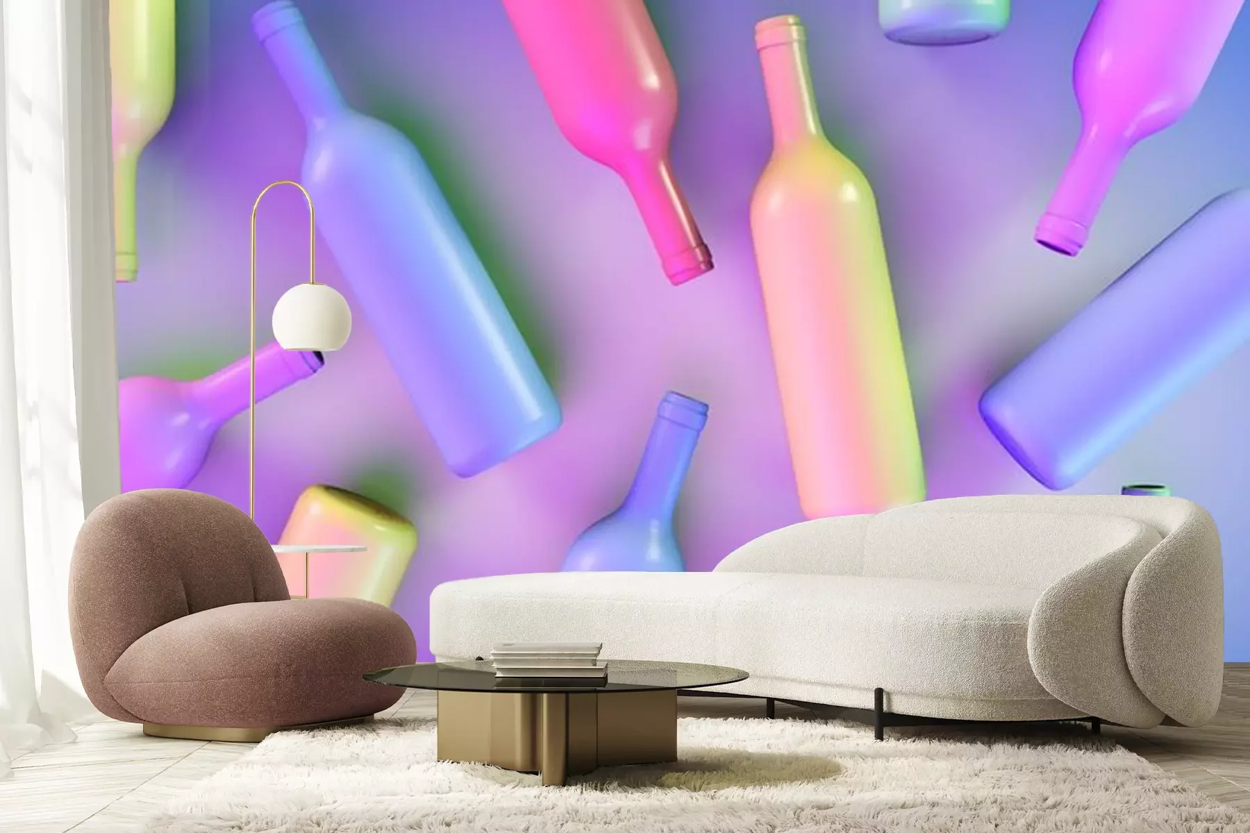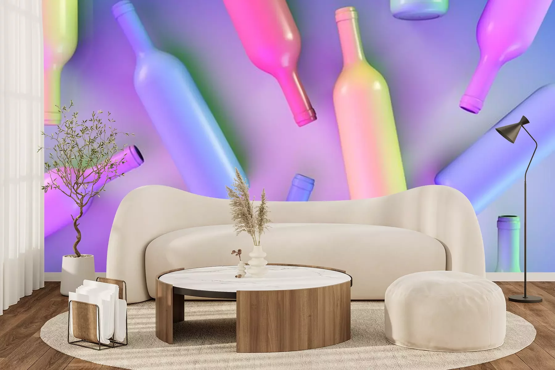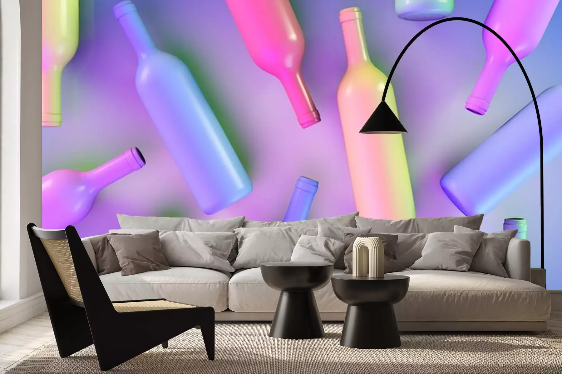Papier peint  Bouteilles de vin colorées