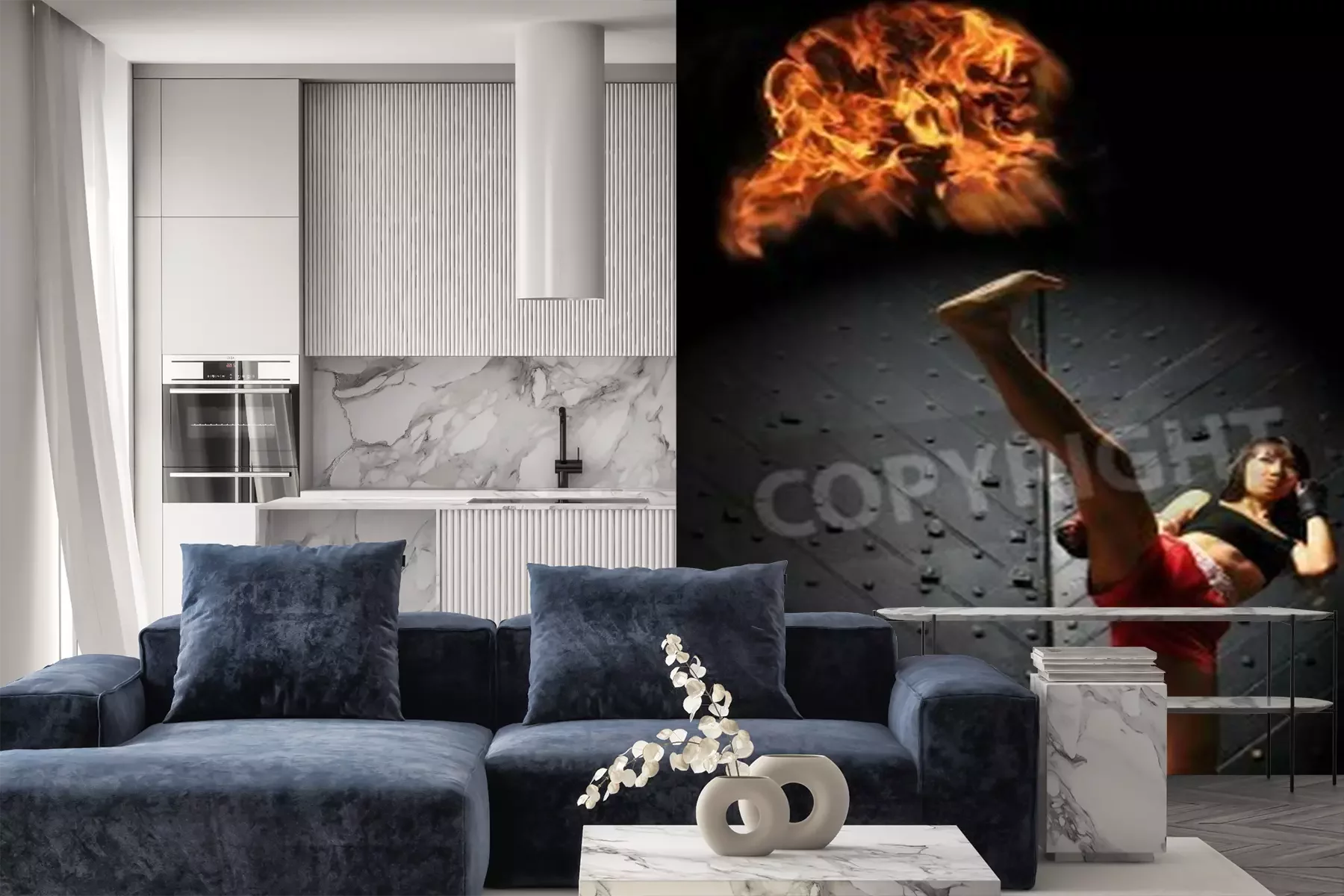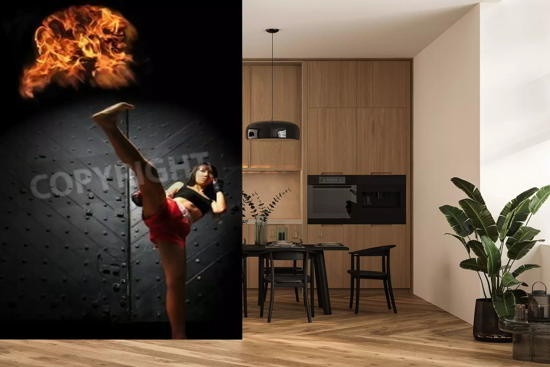 Papier peint  Boxeuse sur fond noir