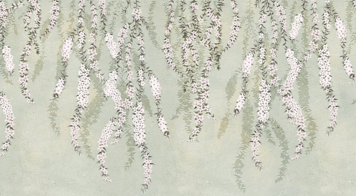 Papier peint : Branches avec des fleurs épanouies suspendues au-dessus