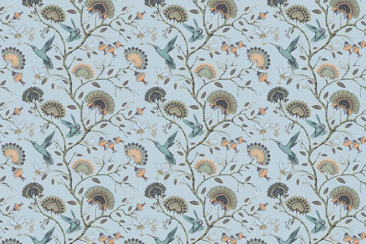 Papier peint : Branches avec des fleurs parmi les oiseaux