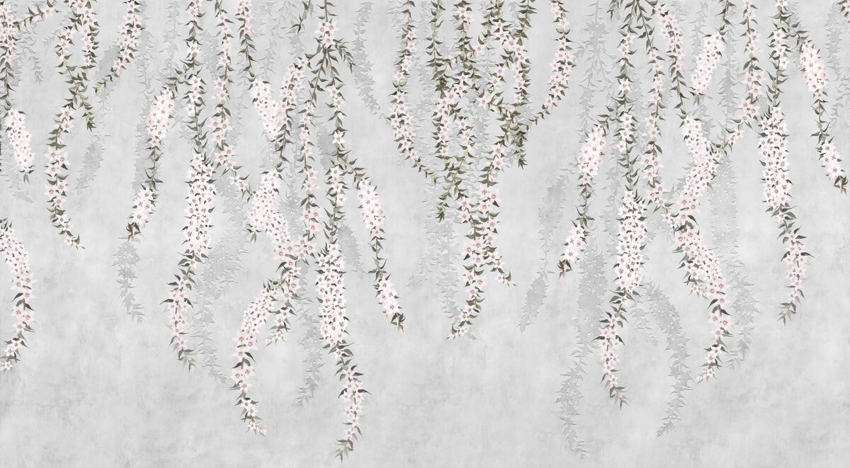 Papier peint : Branches fleuries avec des fleurs sur fond gris