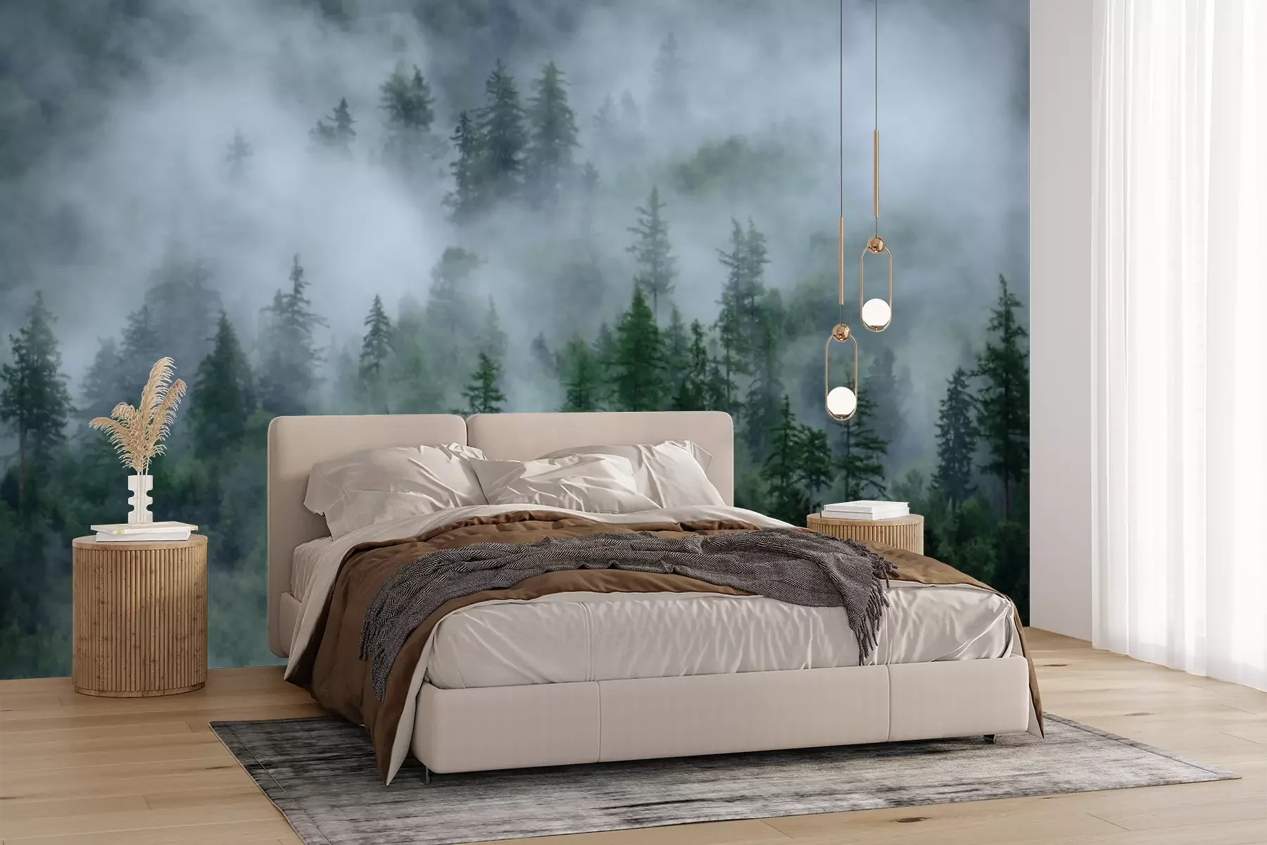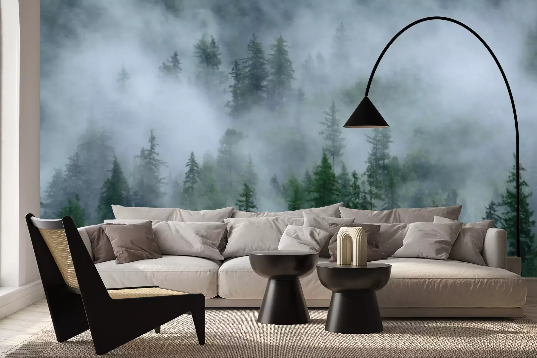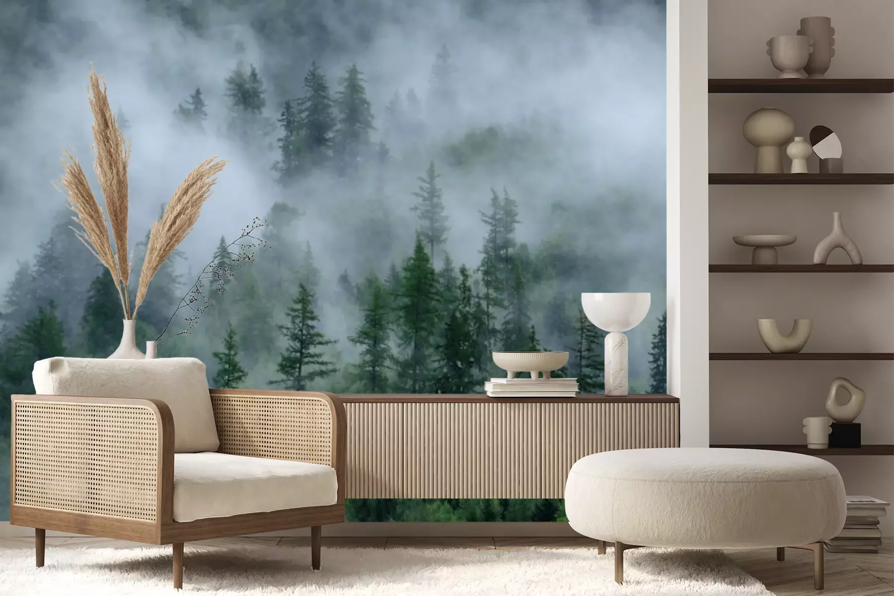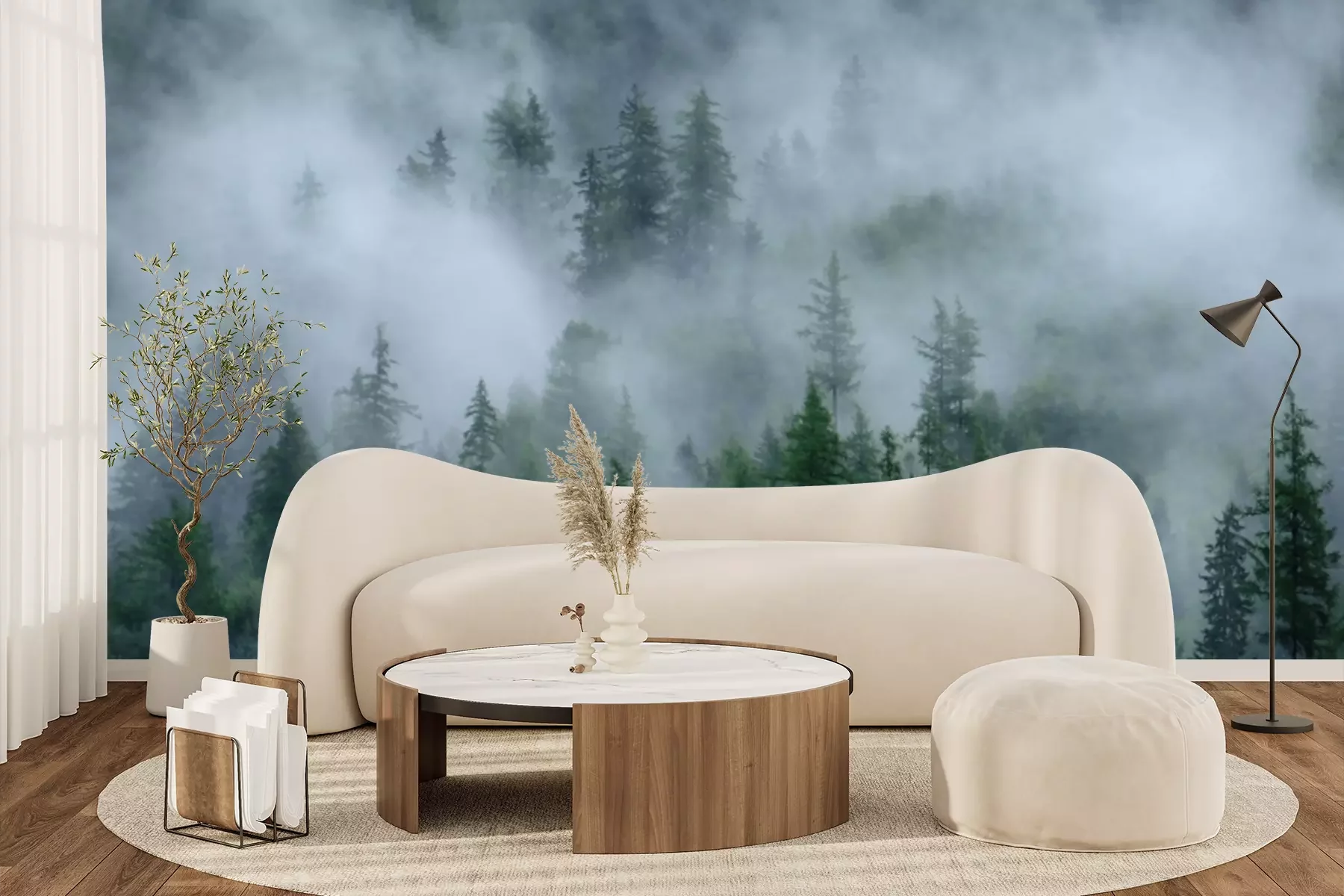 Papier peint  Brouillard dense et arbres