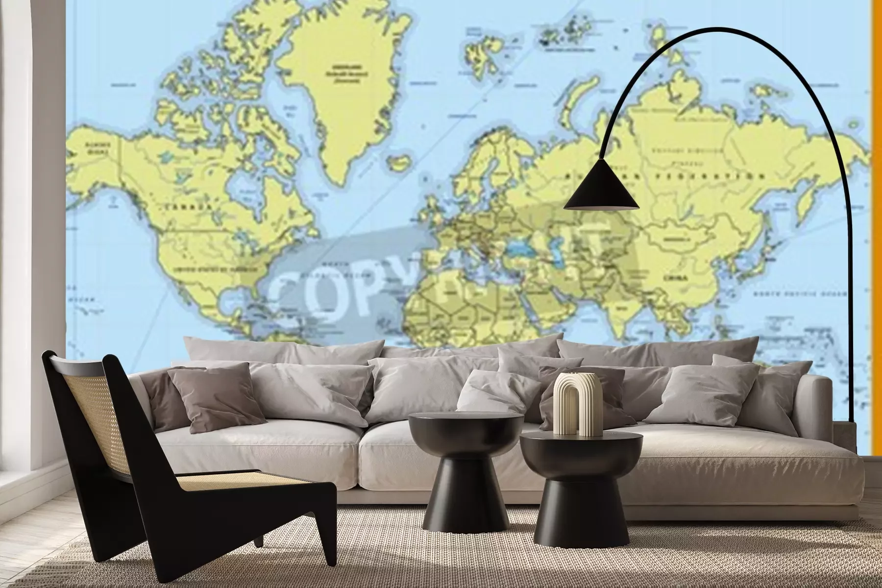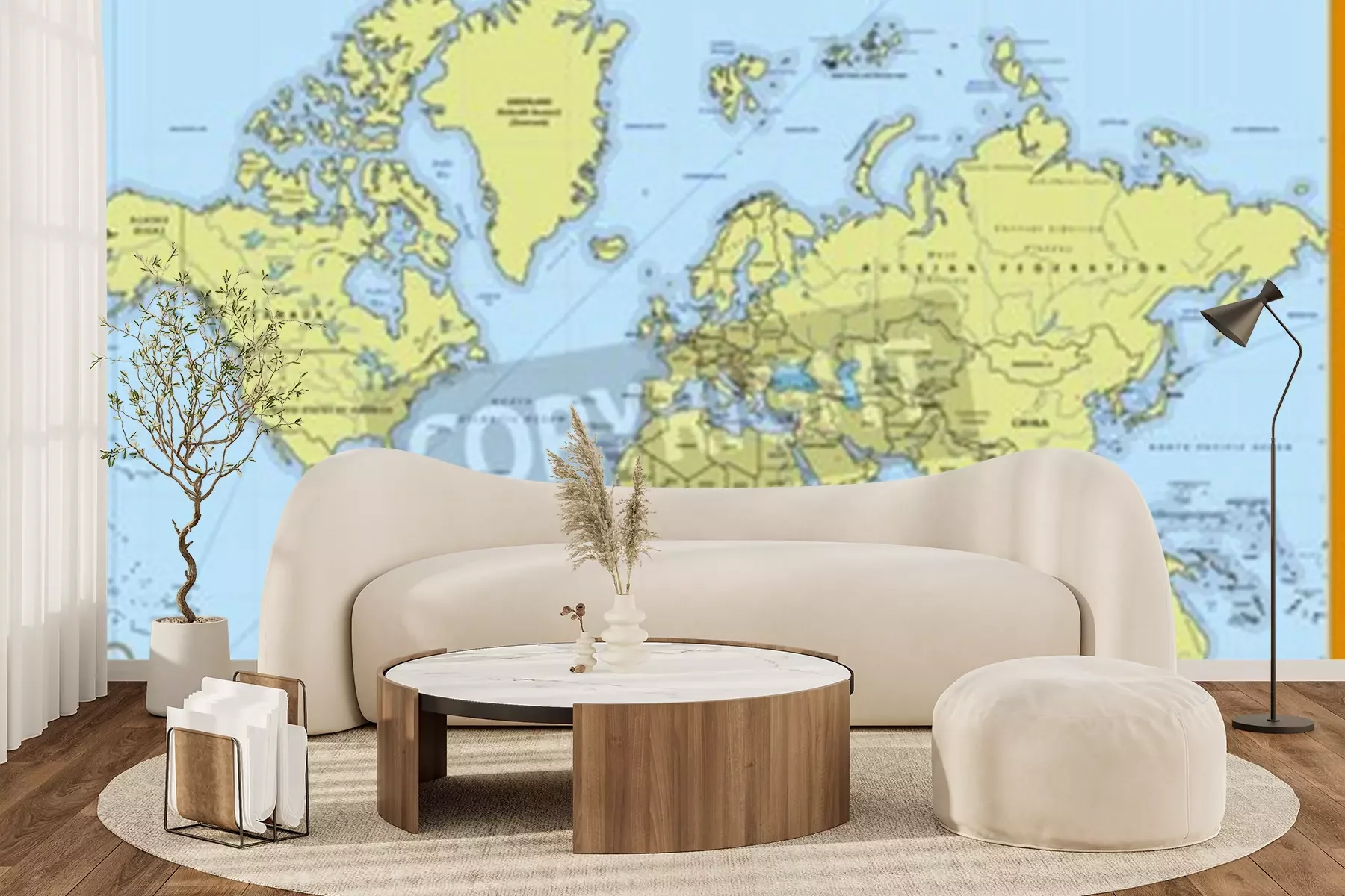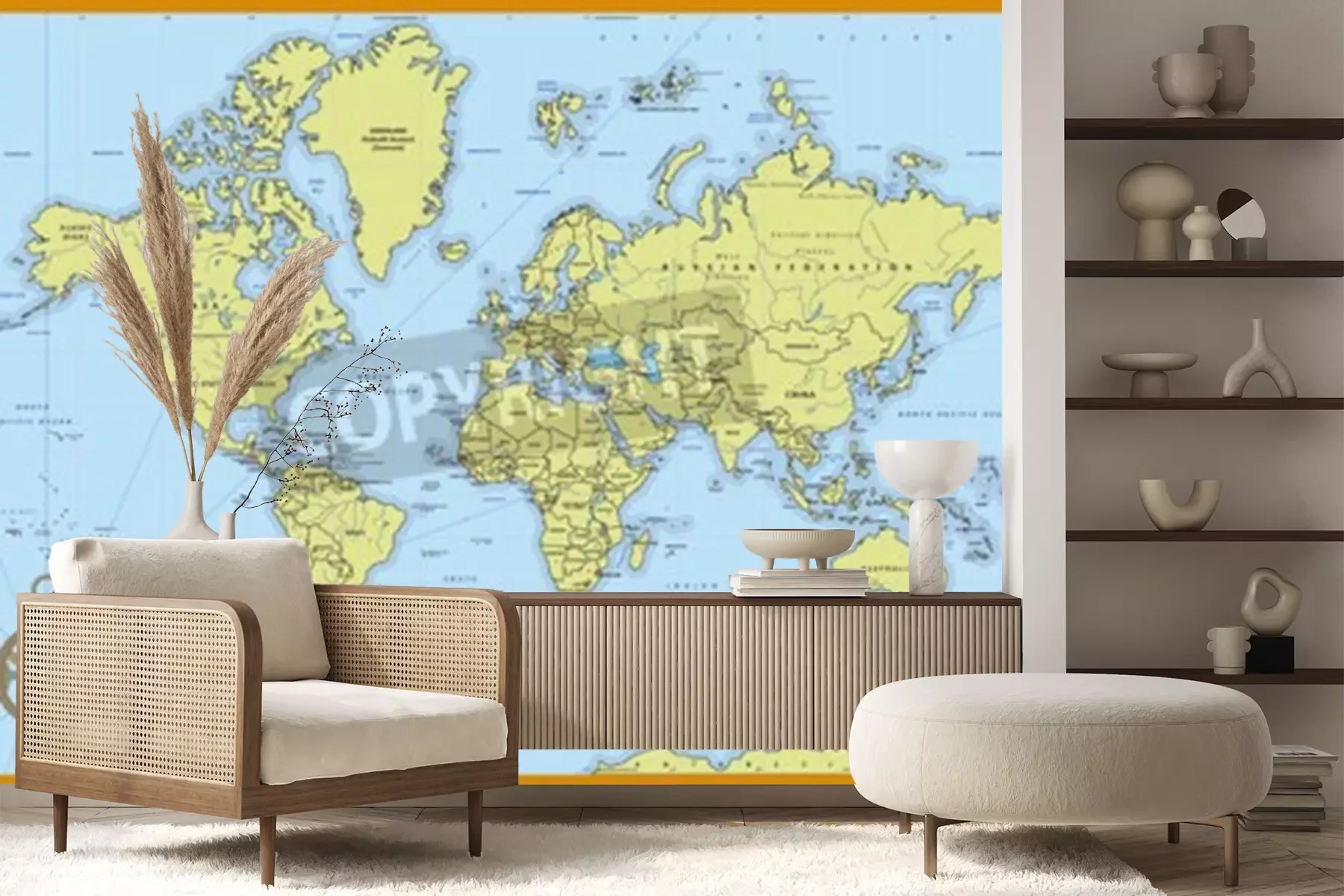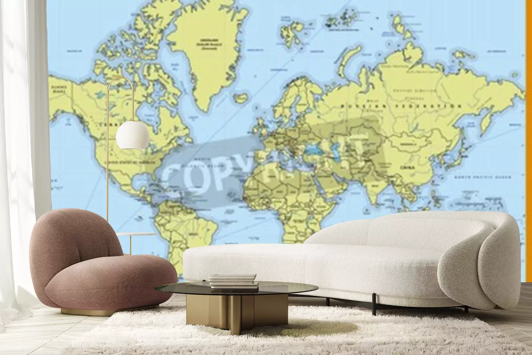 Papier peint  Carte du monde politique très détaillée avec chapiteaux, rivières, couches séparées. Illustration vectorielle.