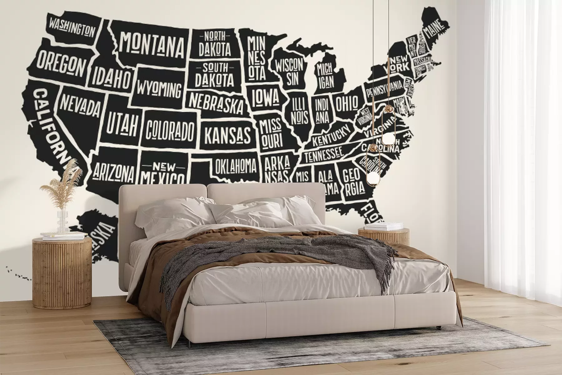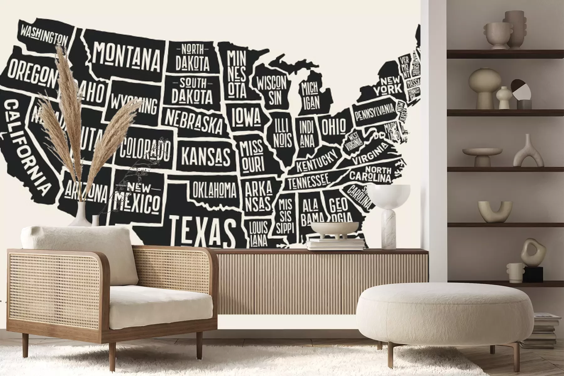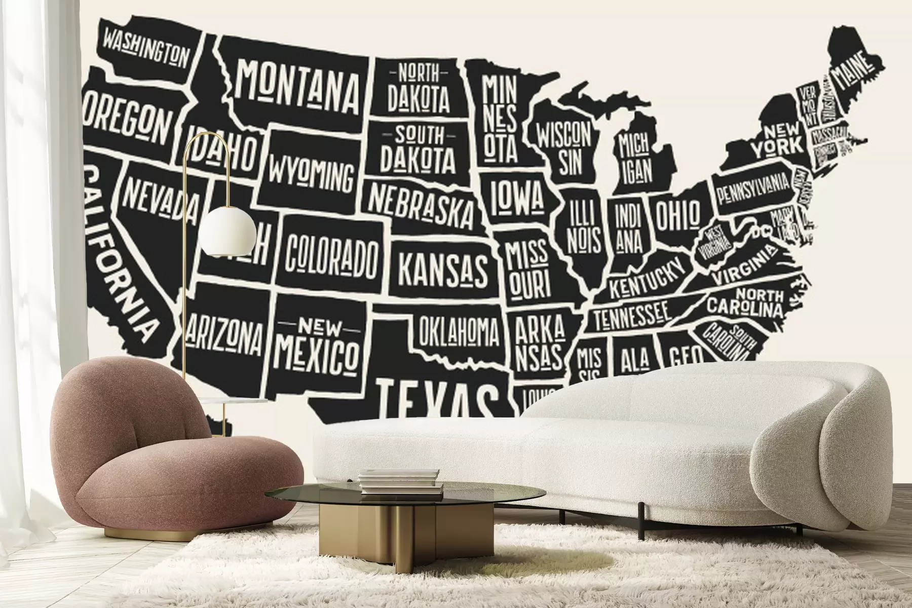 Papier peint  Carte monochrome des États-Unis avec les États étiquetés