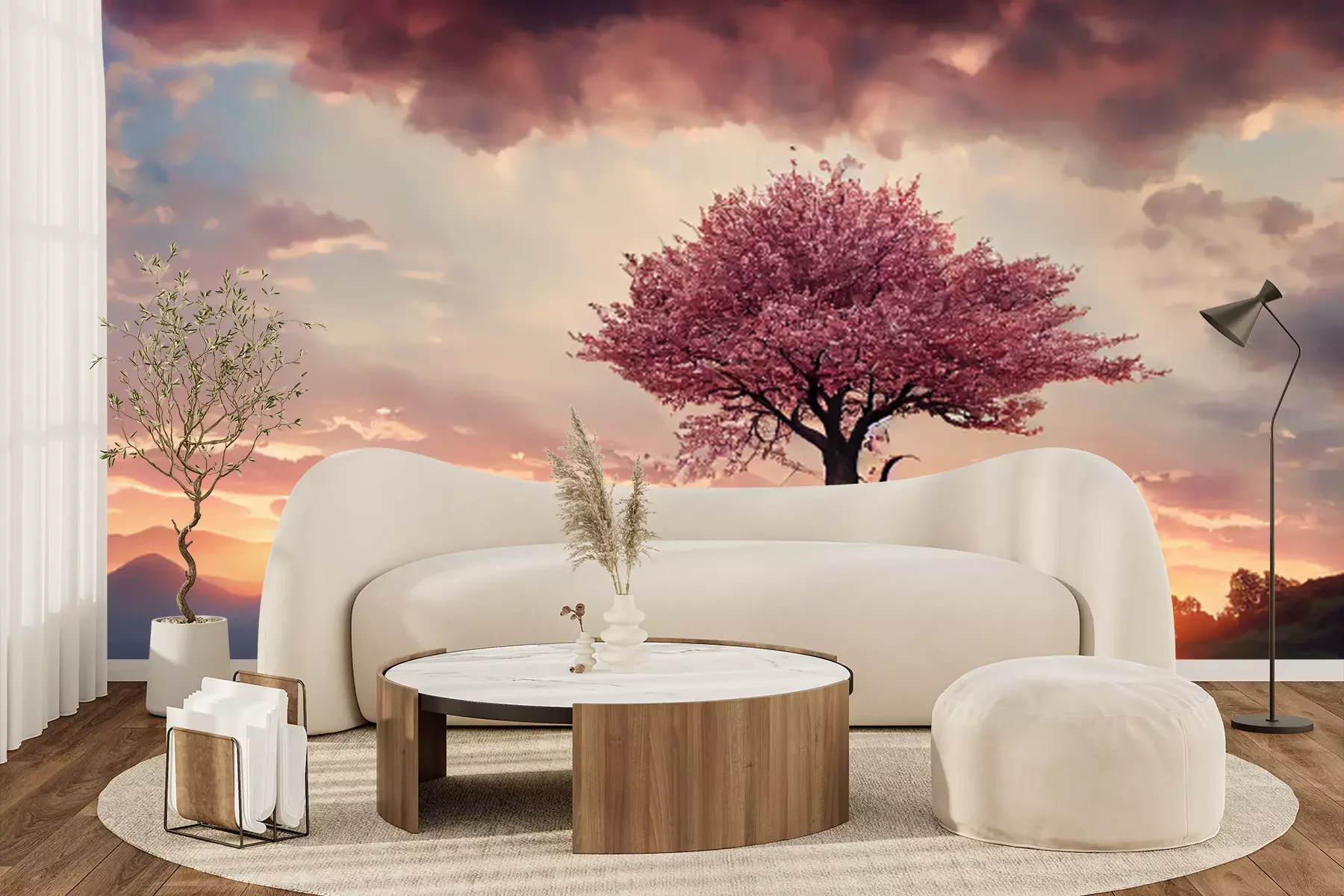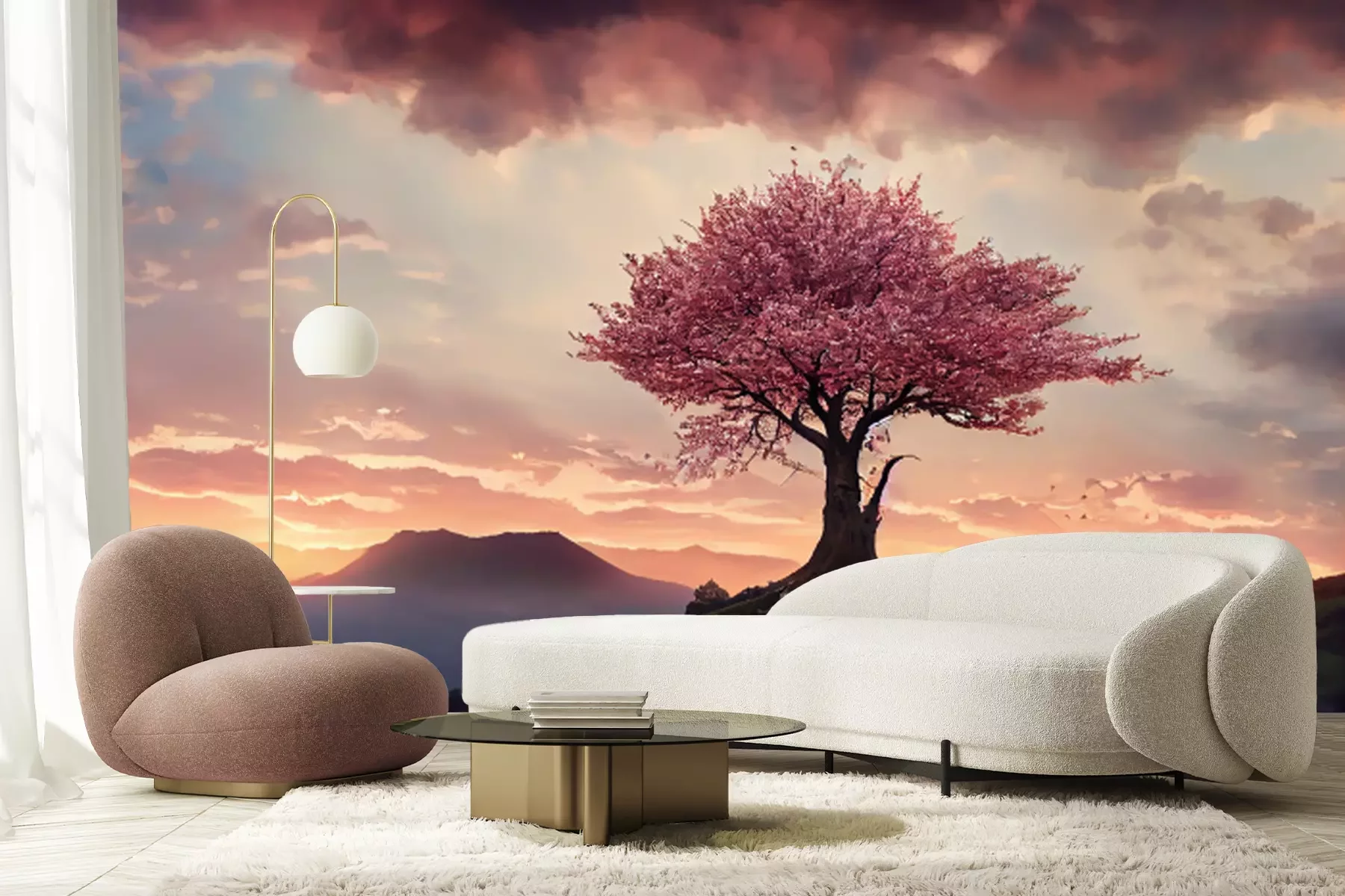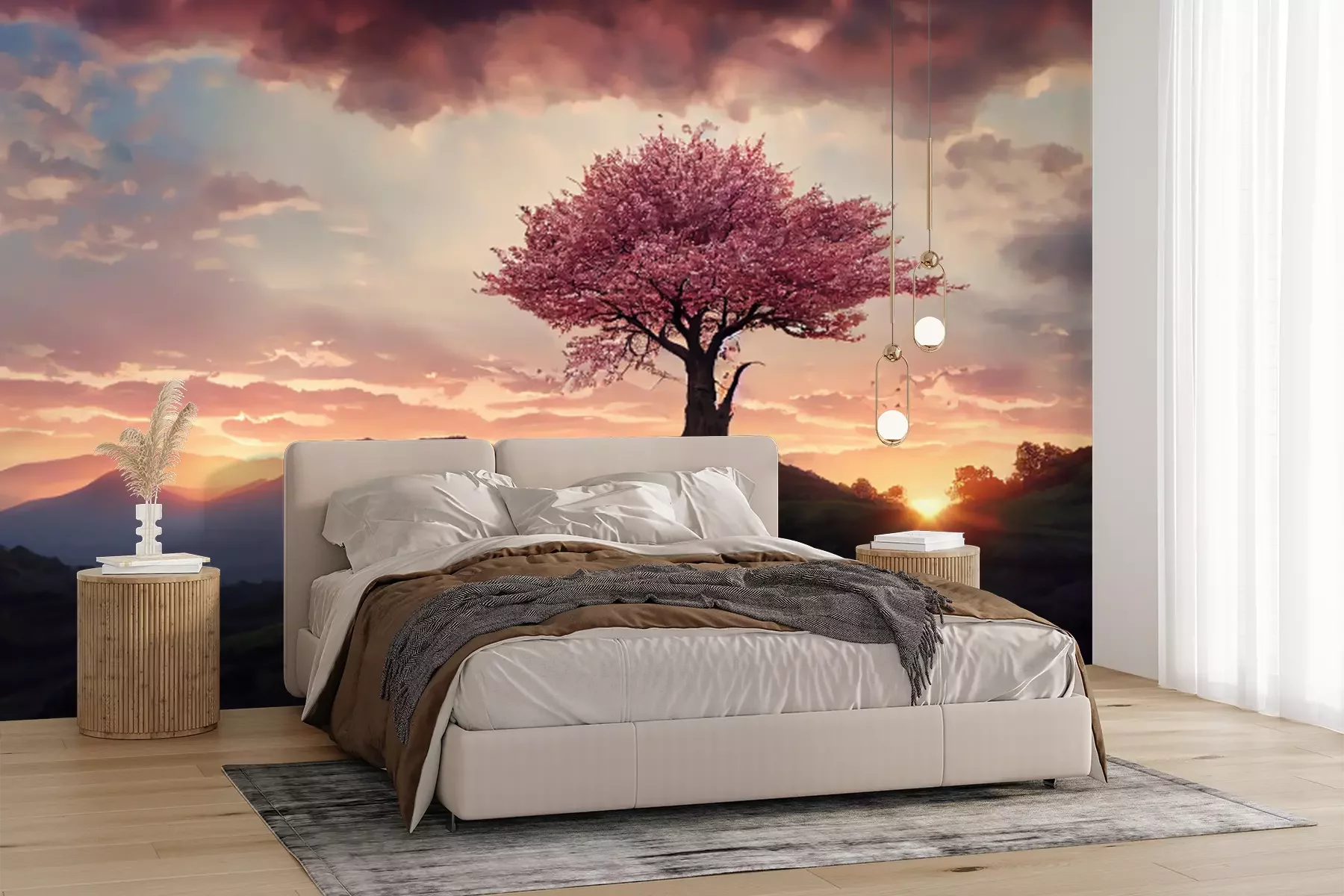 Papier peint  Cerisier rose sur la colline